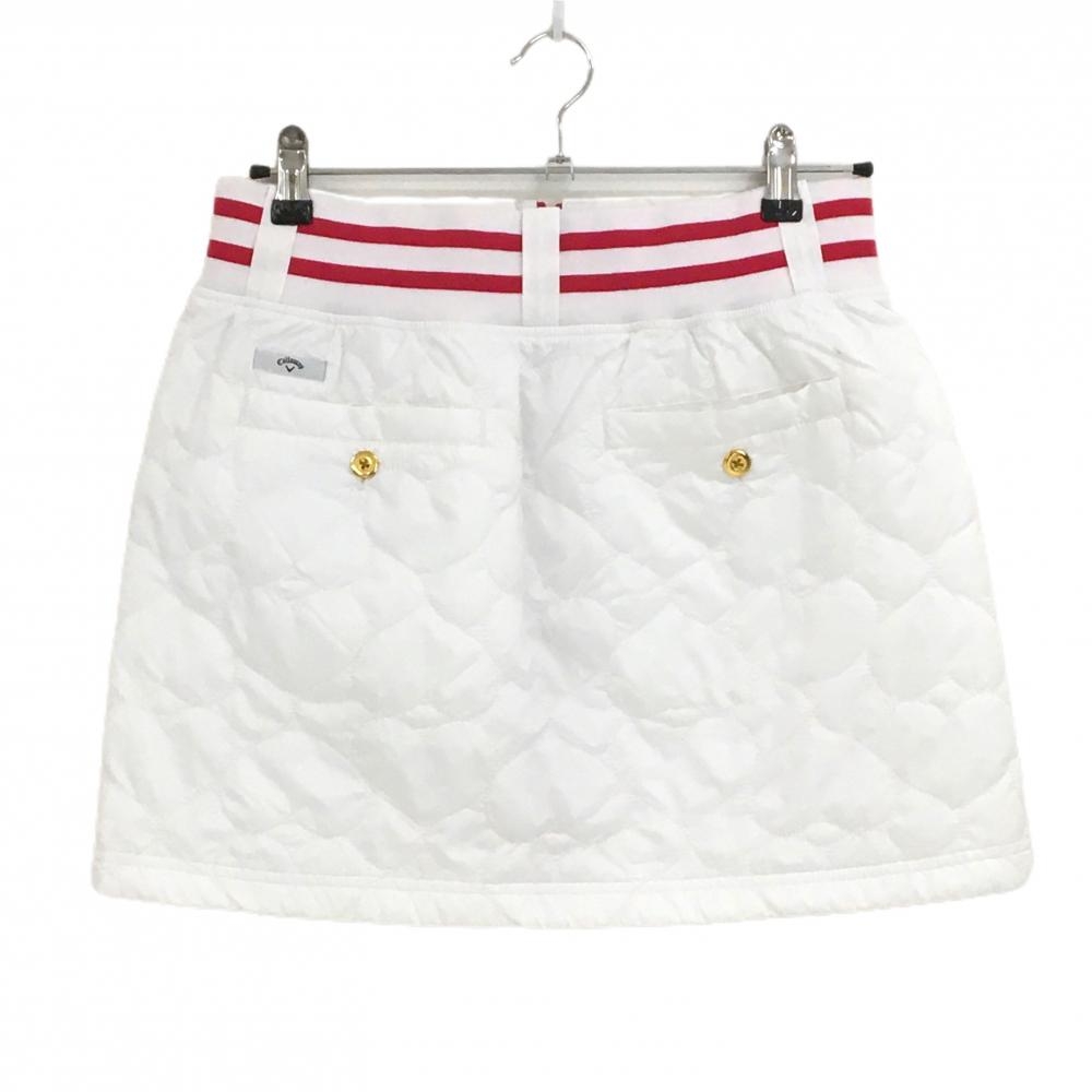 【美品】キャロウェイ 中綿スカート 白×レッドピンク ハートキルティング 薄中綿 センタージップ レディース L ゴルフウェア Callaway