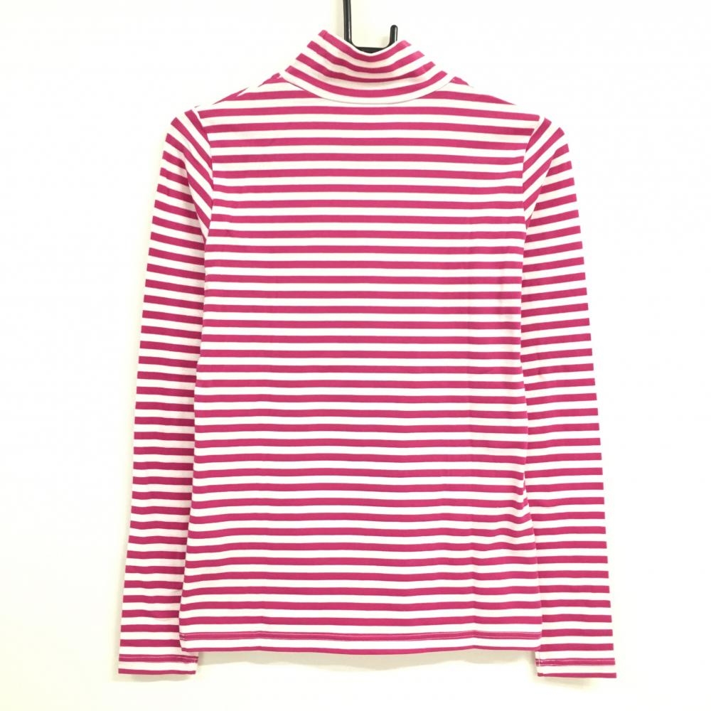 【美品】バービーゴルフバイパーリーゲイツ 長袖ハイネックシャツ 白×ピンク ボーダー レディース 2(L) ゴルフウェア PEARLY GATES