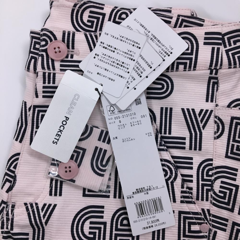 【新品】パーリーゲイツ パンツ ライトピンク×ダークネイビー ロゴ総柄 ボーダー織生地 レディース 0(S) ゴルフウェア PEARLY GATES