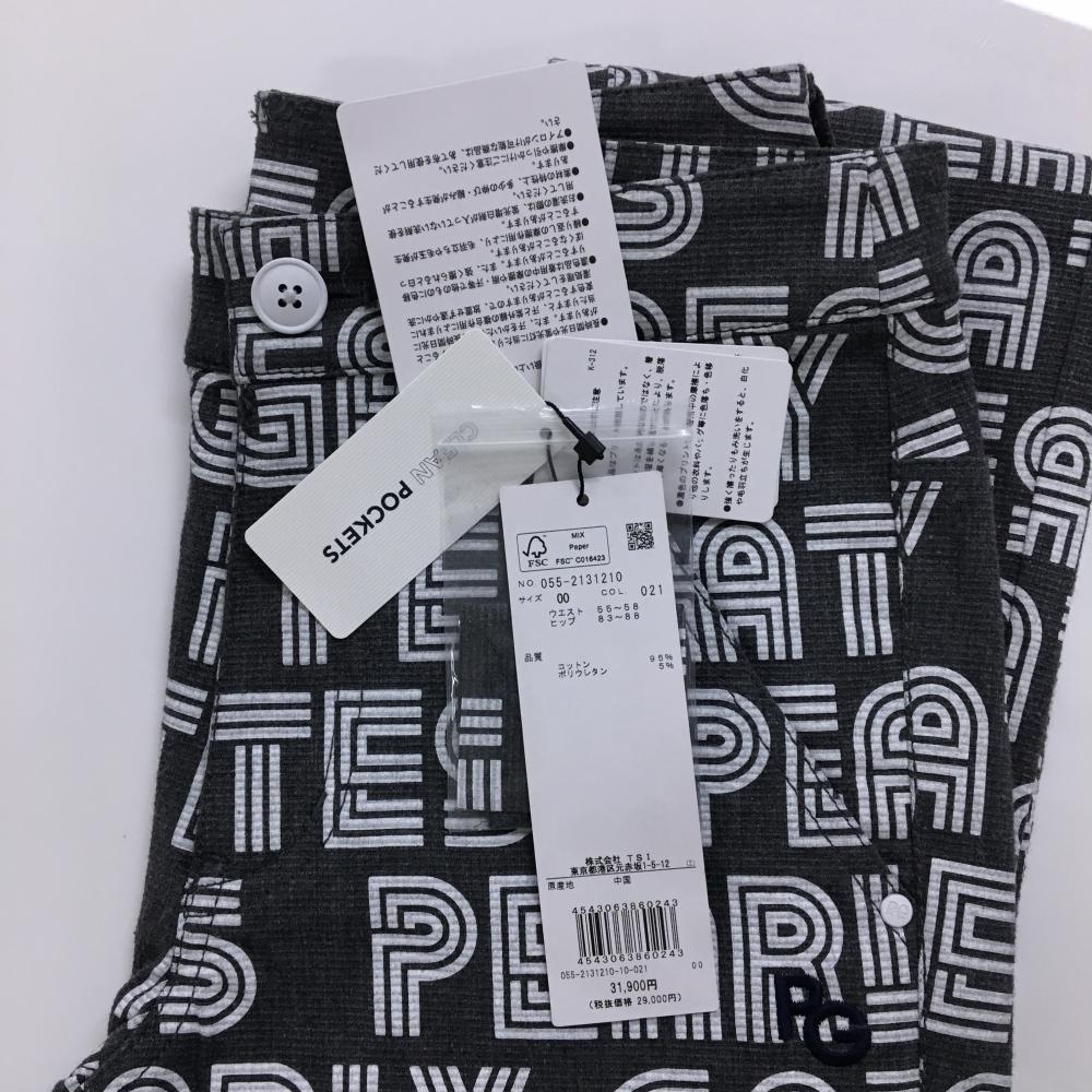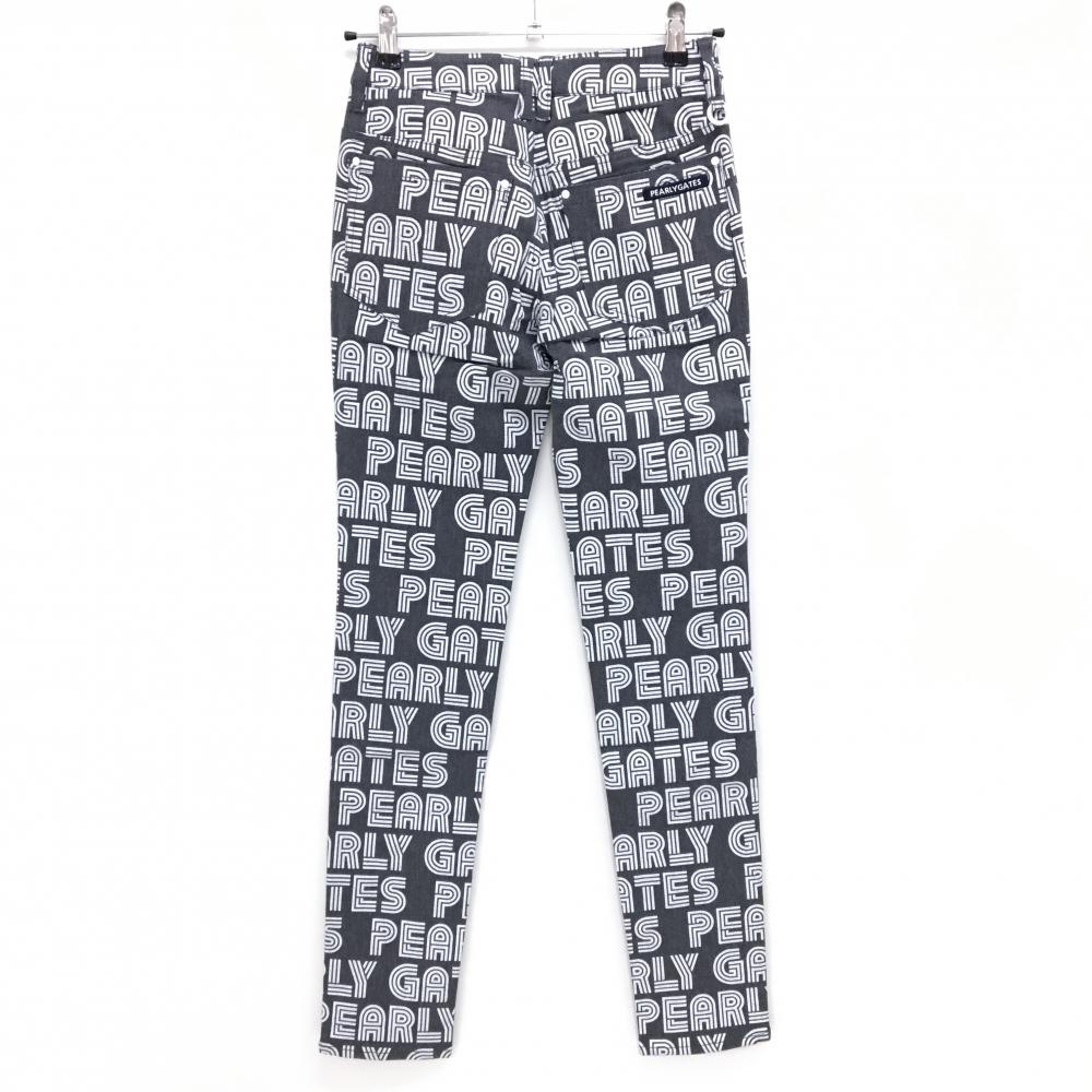 【新品】パーリーゲイツ パンツ ダークグレー×白 ロゴ総柄 ボーダー織生地 レディース 00(XS) ゴルフウェア PEARLY GATES
