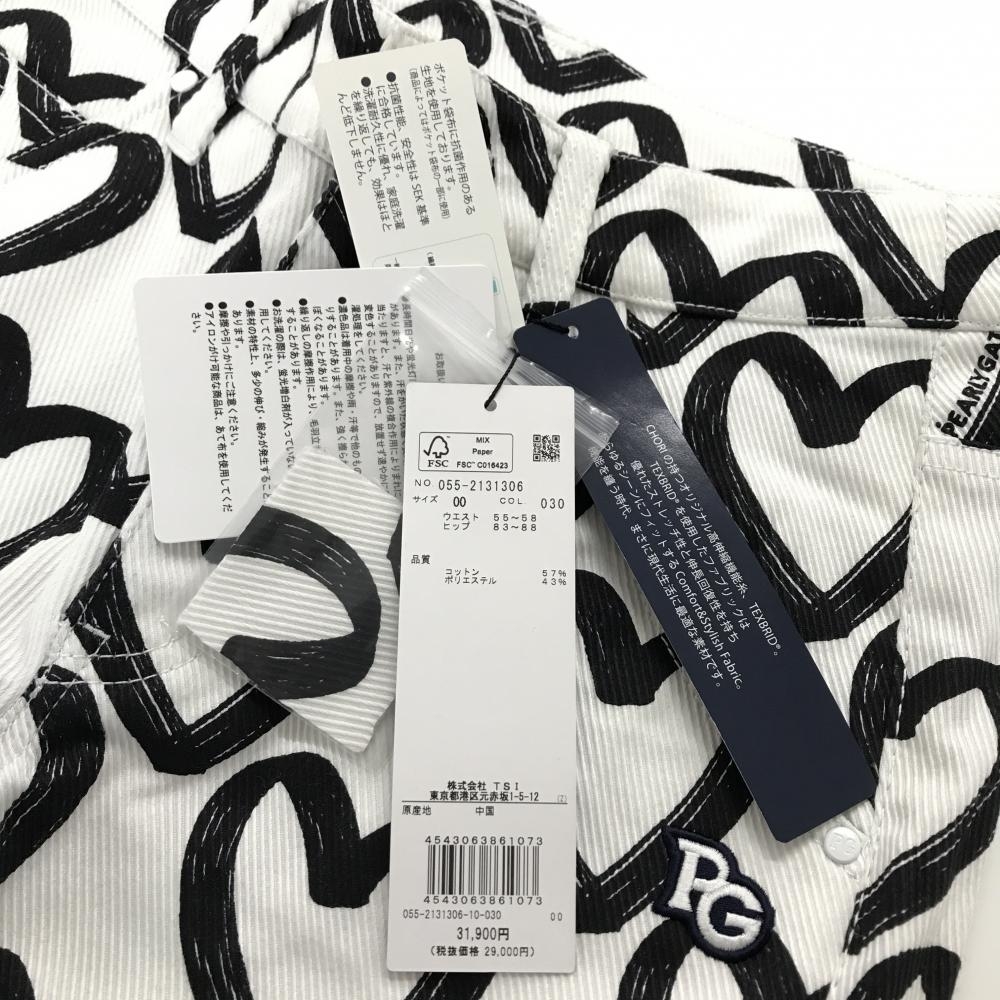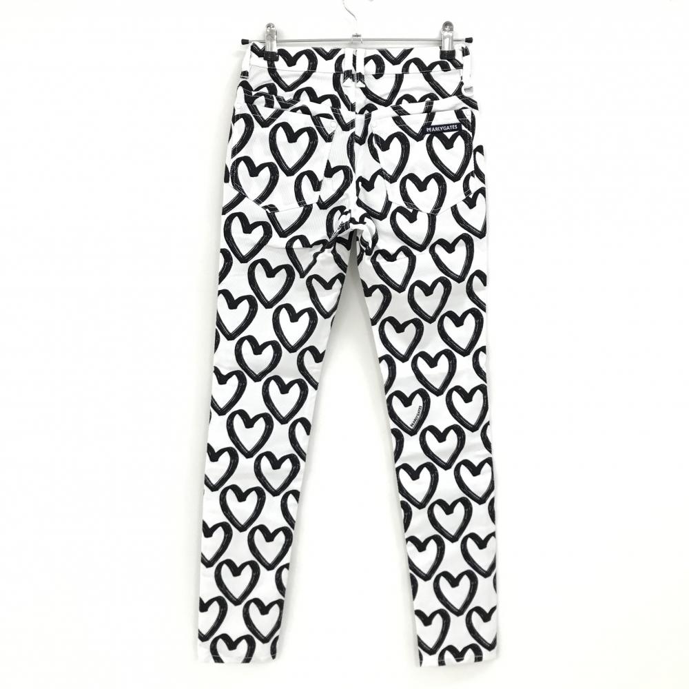 【新品】パーリーゲイツ パンツ 白×黒 ハート柄 ロゴ刺しゅう レディース 00(XS) ゴルフウェア PEARLY GATES
