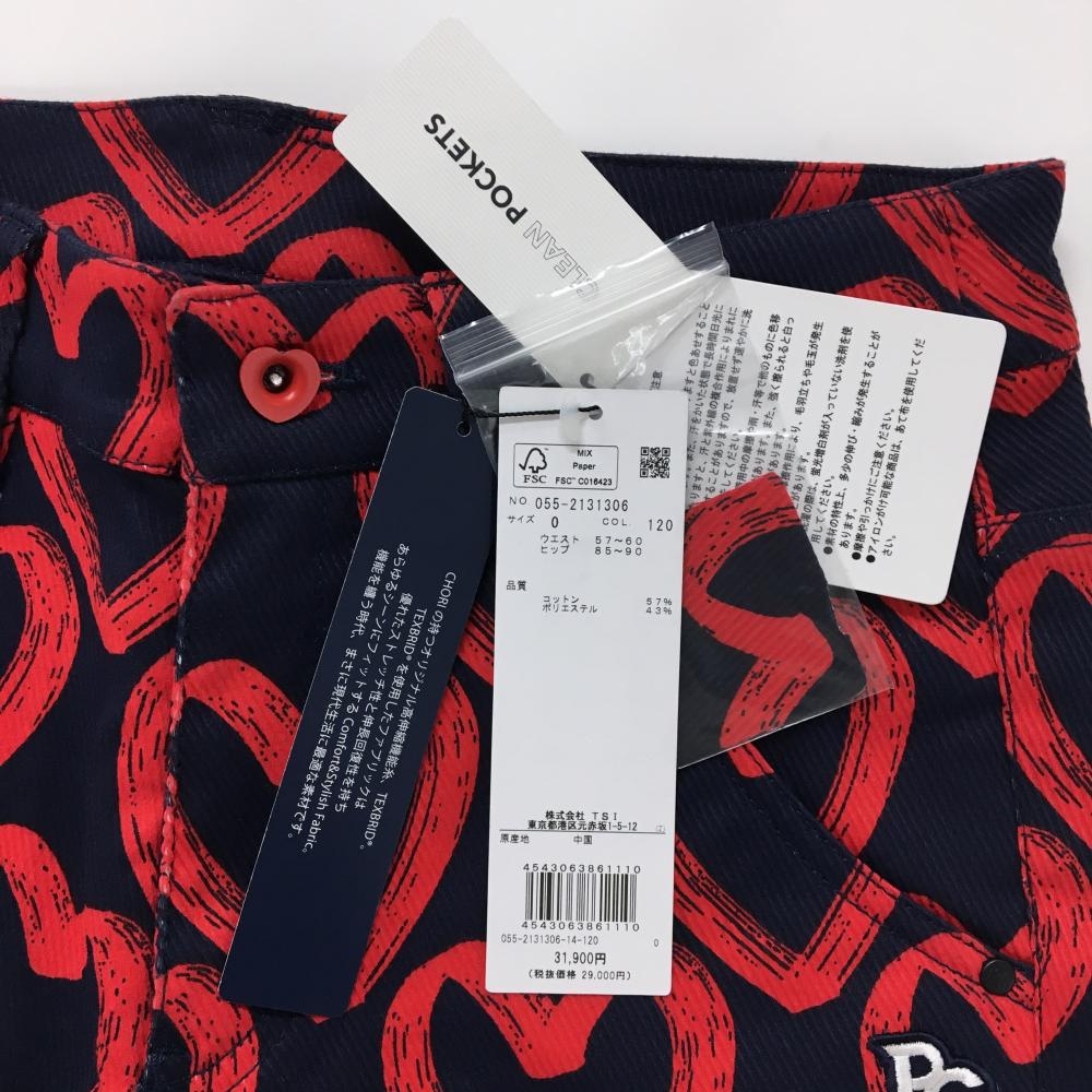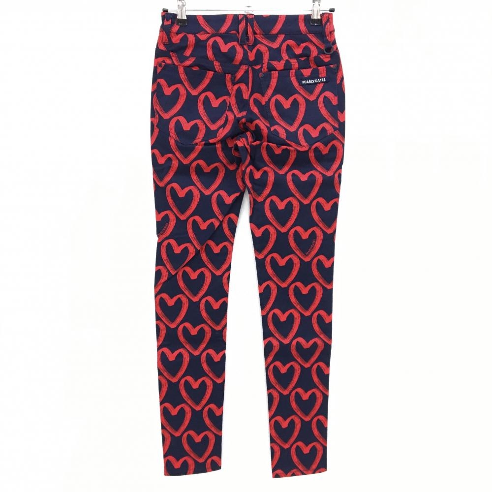 【新品】パーリーゲイツ パンツ ネイビー×レッド ハート柄 ロゴ刺しゅう レディース 0(S) ゴルフウェア PEARLY GATES