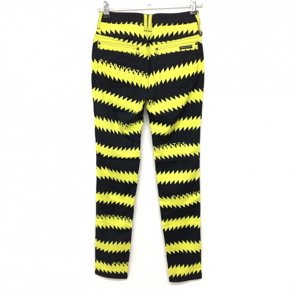 【新品】パーリーゲイツ パンツ 黒×イエロー ギザギザボーダー ストレッチ レディース 00(XS) ゴルフウェア PEARLY GATES