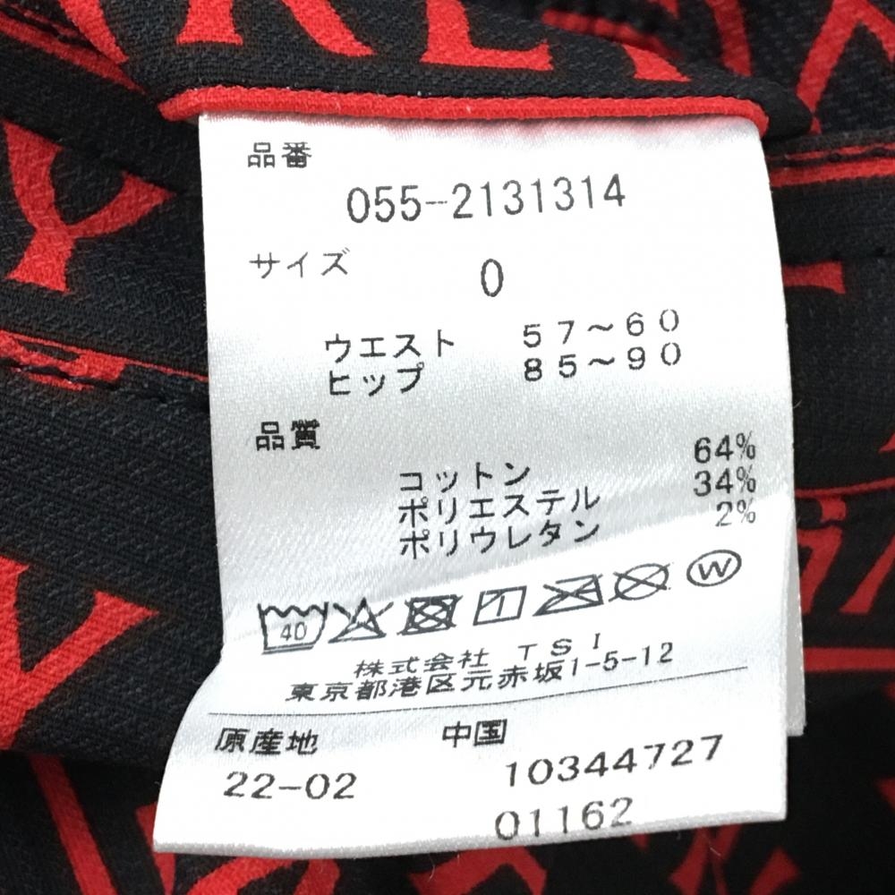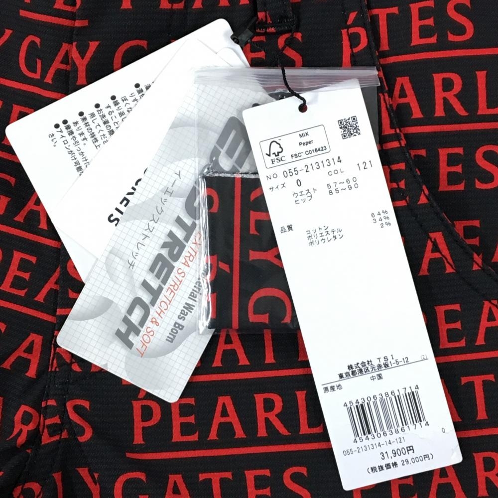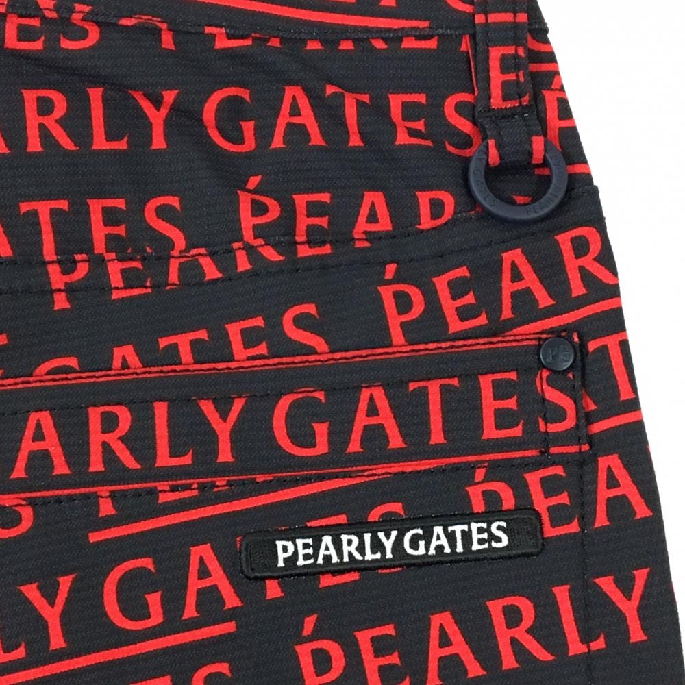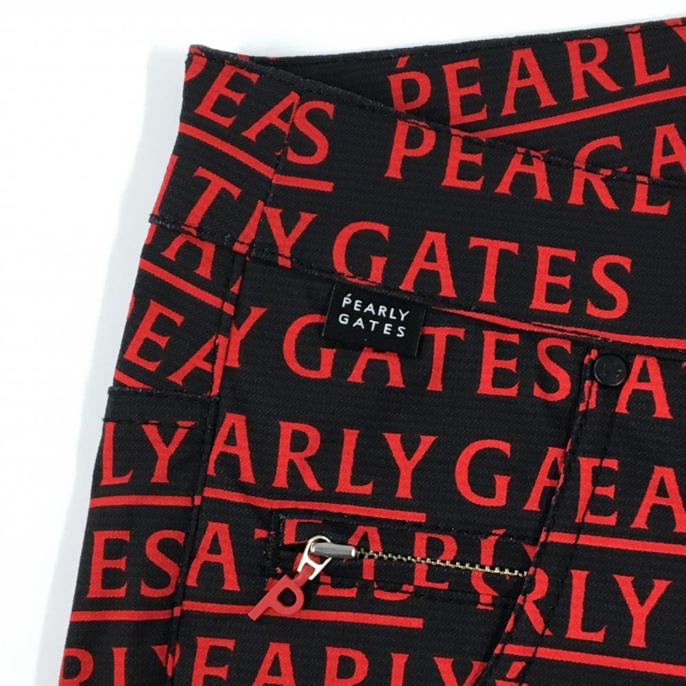 【新品】パーリーゲイツ パンツ 黒×レッド ロゴ総柄 刺しゅう白 レディース 0(S) ゴルフウェア PEARLY GATES