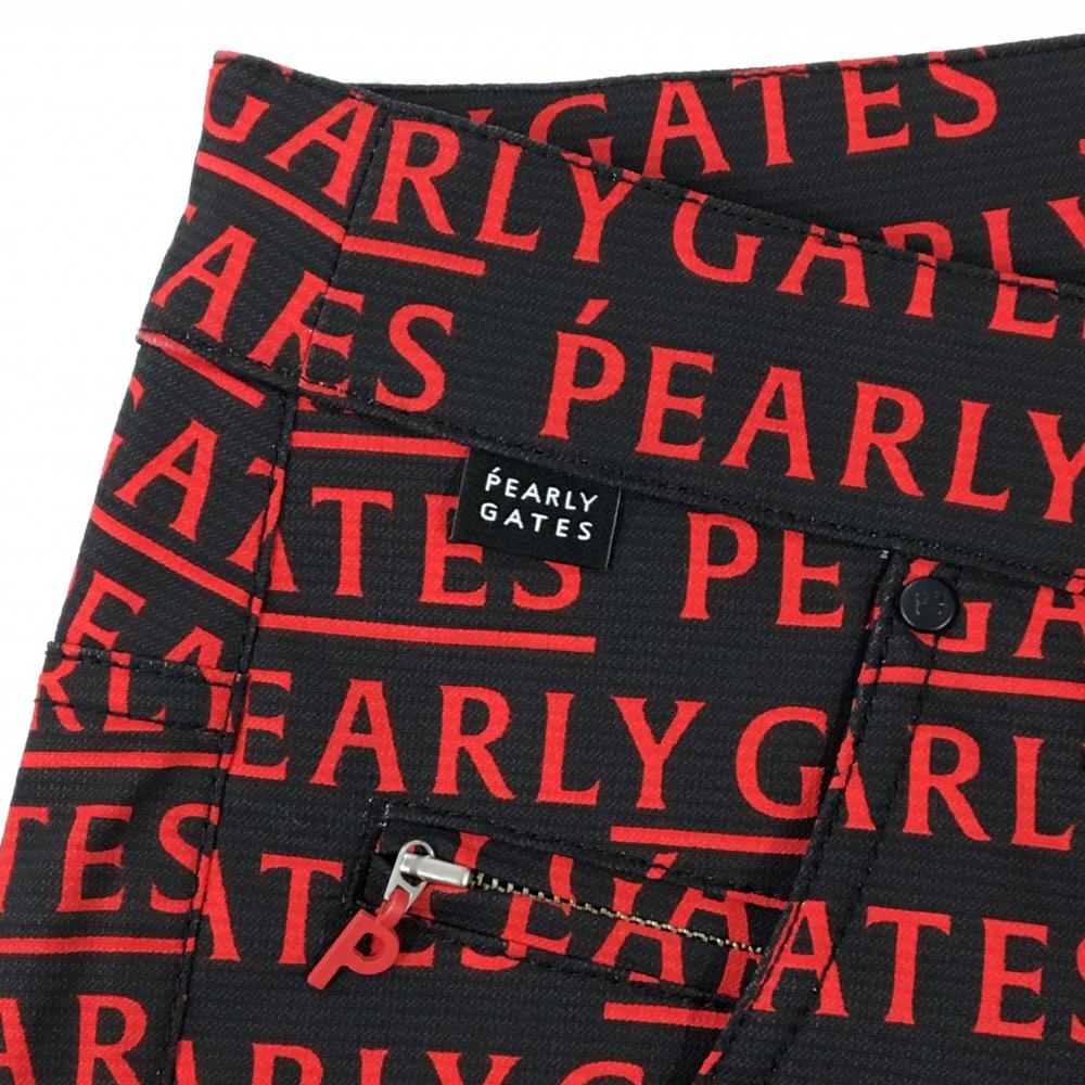 【新品】パーリーゲイツ パンツ 黒×レッド ロゴ総柄 刺しゅう白 レディース 0(S) ゴルフウェア PEARLY GATES