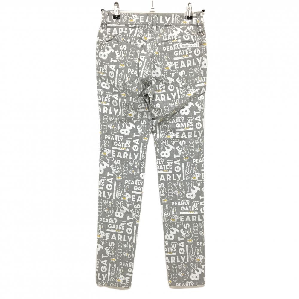 【新品】パーリーゲイツ パンツ グレー×白 ロゴ総柄 どうしちゃったPG ボーダー織生地 レディース 00(XS) ゴルフウェア PEARLY GATES