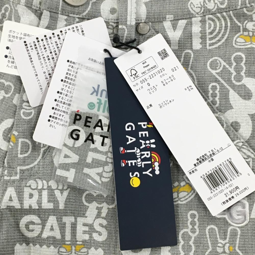 【新品】パーリーゲイツ パンツ グレー×白 ロゴ総柄 どうしちゃったPG ボーダー織生地 レディース 0(S) ゴルフウェア PEARLY GATES