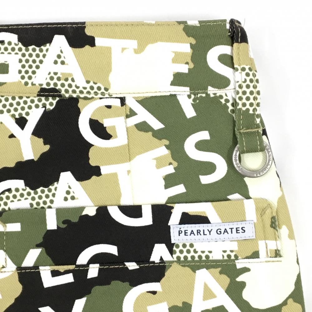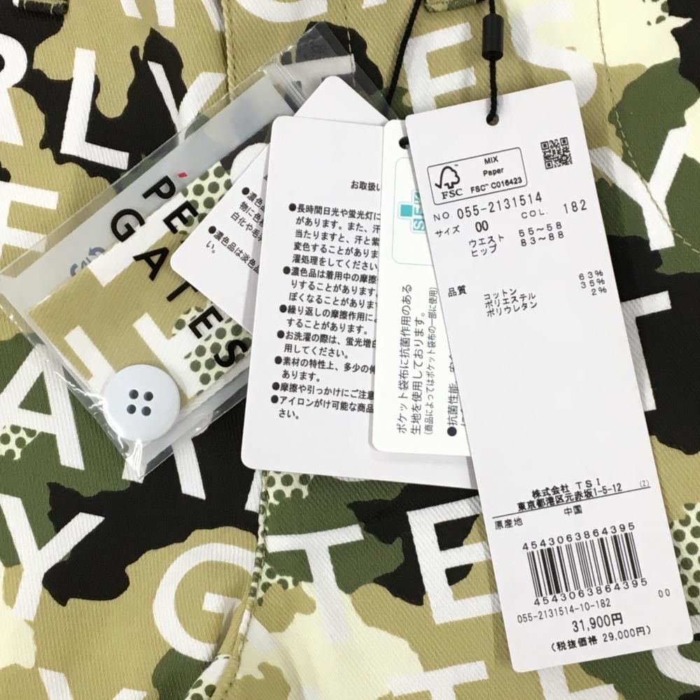【新品】パーリーゲイツ パンツ カーキ×白 ロゴ総柄 カモフラ調 迷彩 ロゴ刺しゅう レディース 00(XS) ゴルフウェア PEARLY GATES
