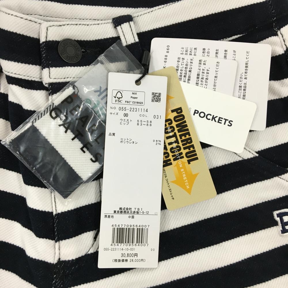 【新品】パーリーゲイツ パンツ 白×ネイビー ボーダー 表微起毛 ロゴ刺しゅう レディース 00(XS) ゴルフウェア PEARLY GATES