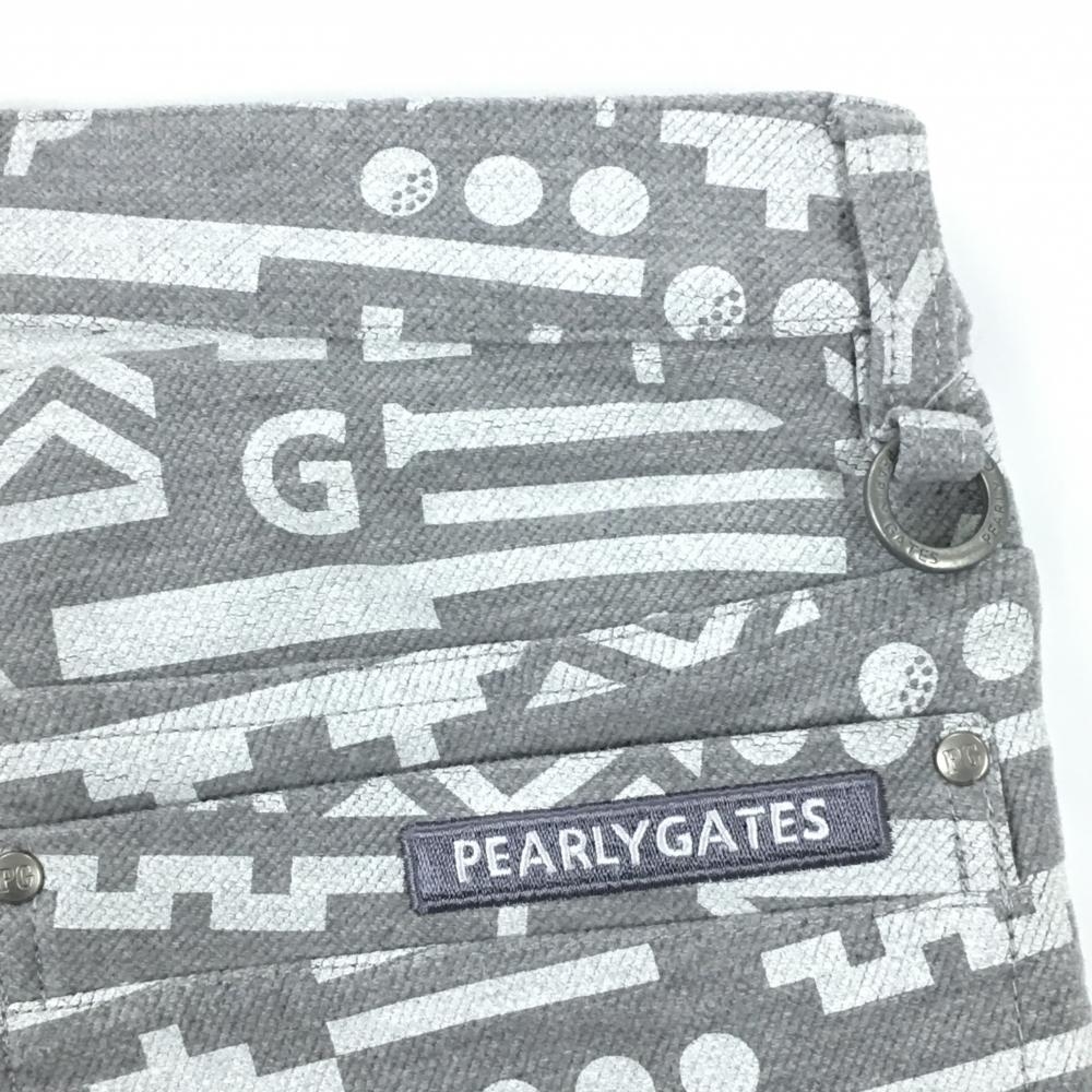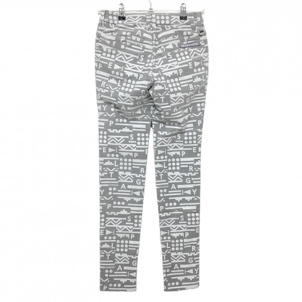 【新品】パーリーゲイツ パンツ グレー×白 総柄 ロゴ刺しゅう ストレッチ 表微起毛 レディース 00(XS) ゴルフウェア PEARLY GATES