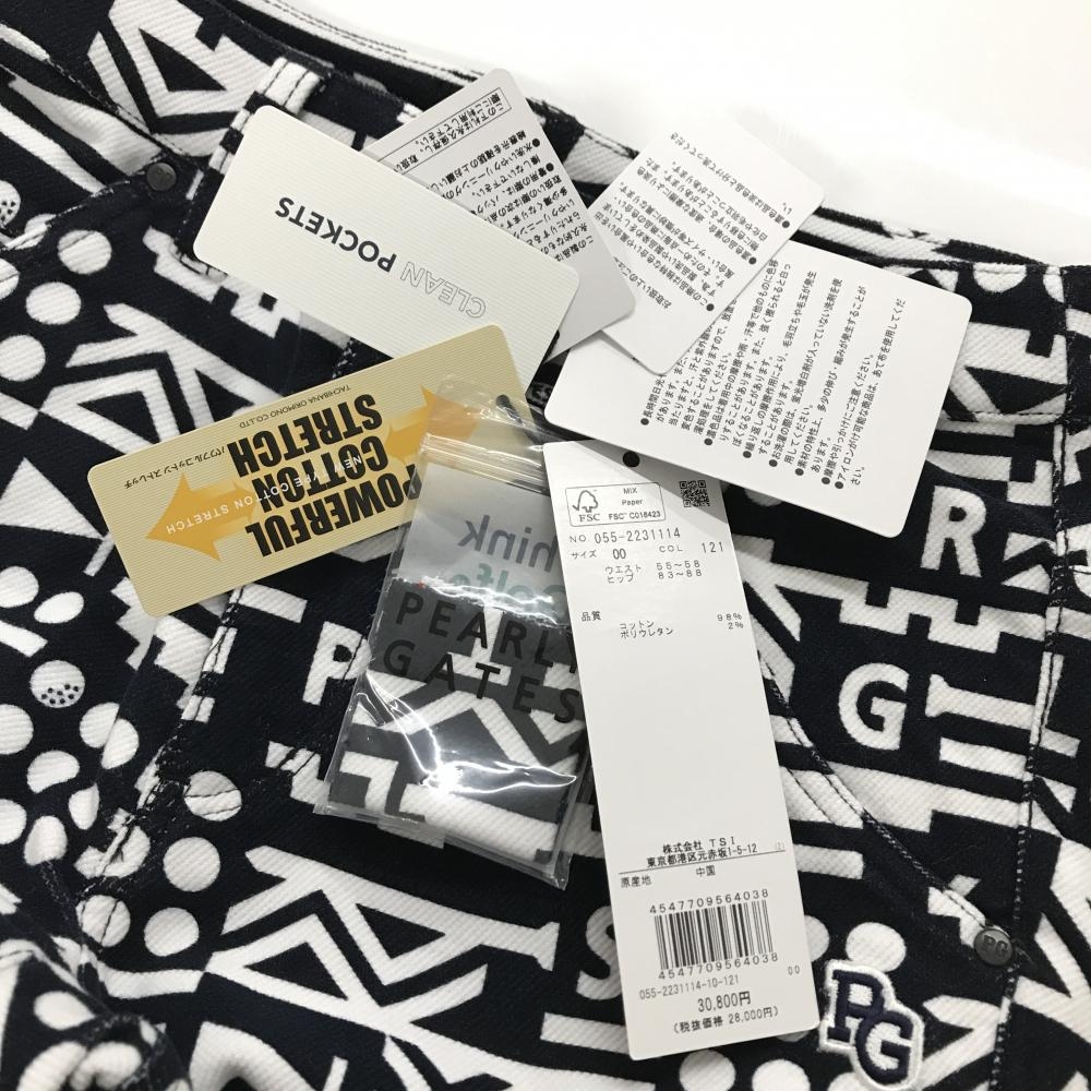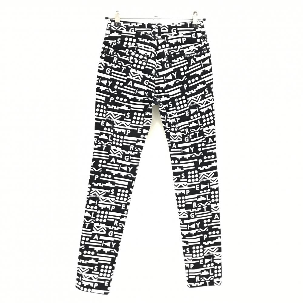 【新品】パーリーゲイツ パンツ ネイビー×白 総柄 ロゴ刺しゅう ストレッチ 表微起毛 レディース 00(XS) ゴルフウェア PEARLY GATES
