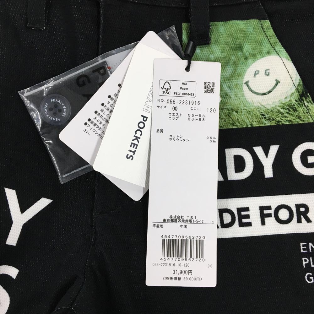 【新品】パーリーゲイツ パンツ 黒×白 写真風 PGニコちゃん ロゴ刺しゅう レディース 00(XS) ゴルフウェア PEARLY GATES