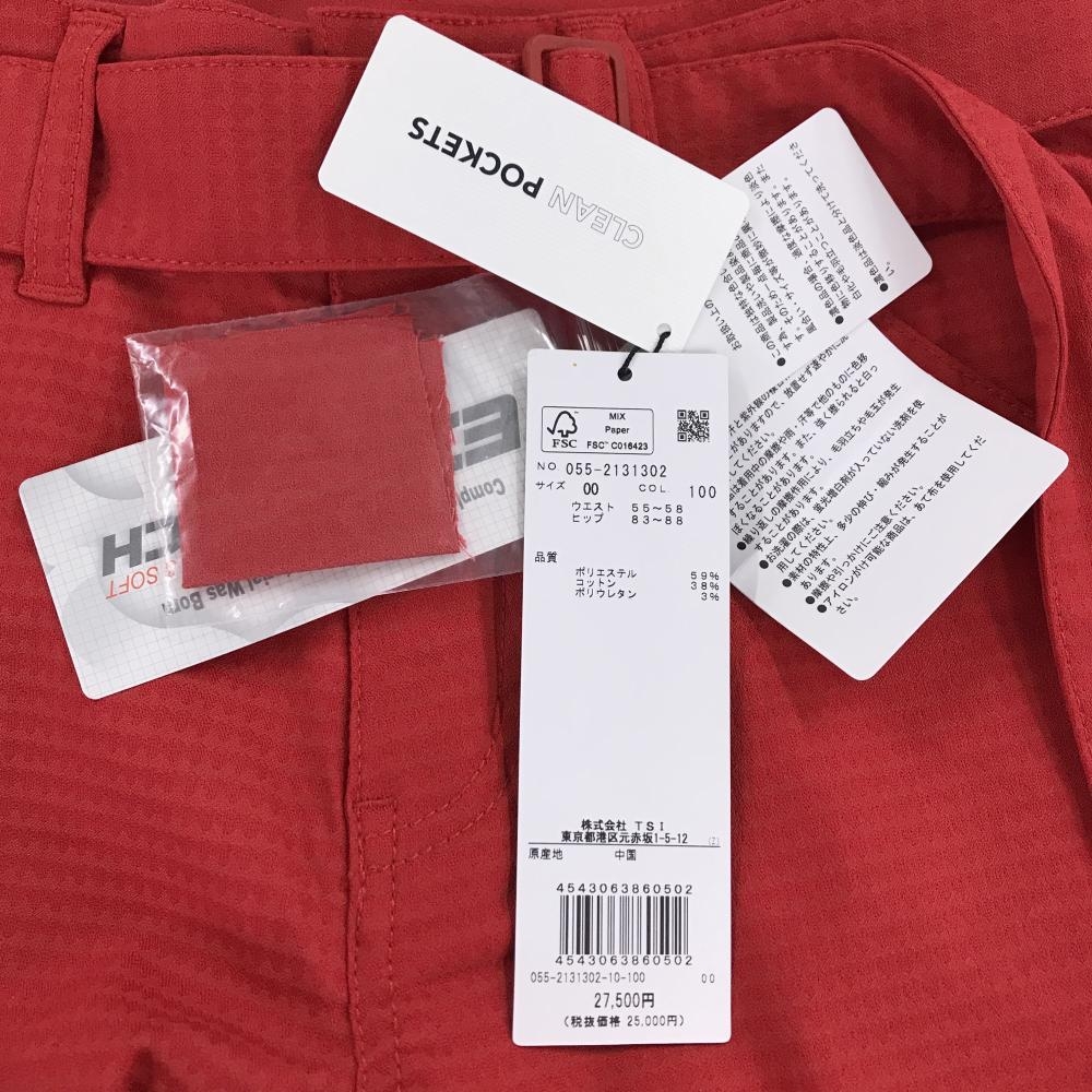 【新品】パーリーゲイツ パンツ レッド 総柄織生地 共布ベルト付き ストレッチ レディース 00(XS) ゴルフウェア PEARLY GATES