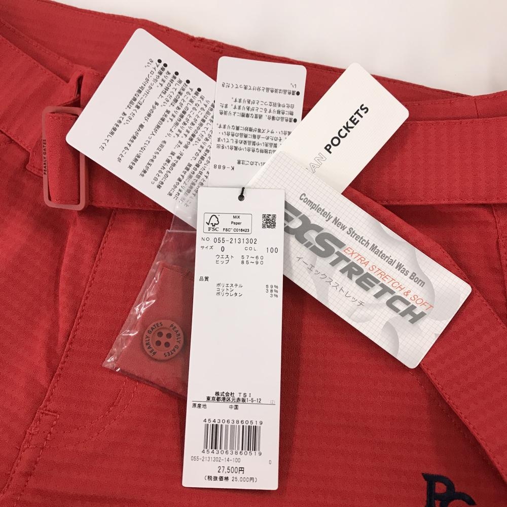【新品】パーリーゲイツ パンツ レッド 総柄織生地 共布ベルト付き ストレッチ レディース 0(S) ゴルフウェア PEARLY GATES