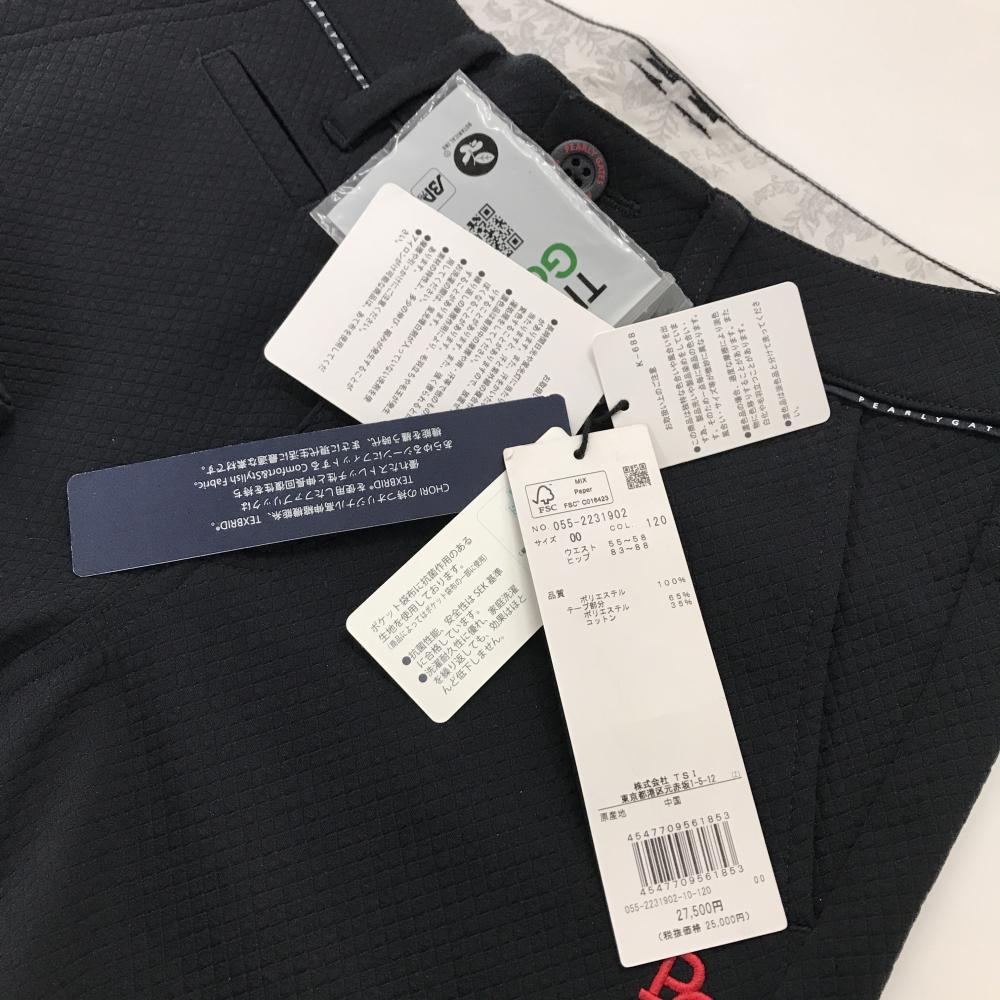 【新品】パーリーゲイツ パンツ 黒×レッド ダイヤ柄織生地 ロゴ刺しゅう レディース 00(XS) ゴルフウェア PEARLY GATES