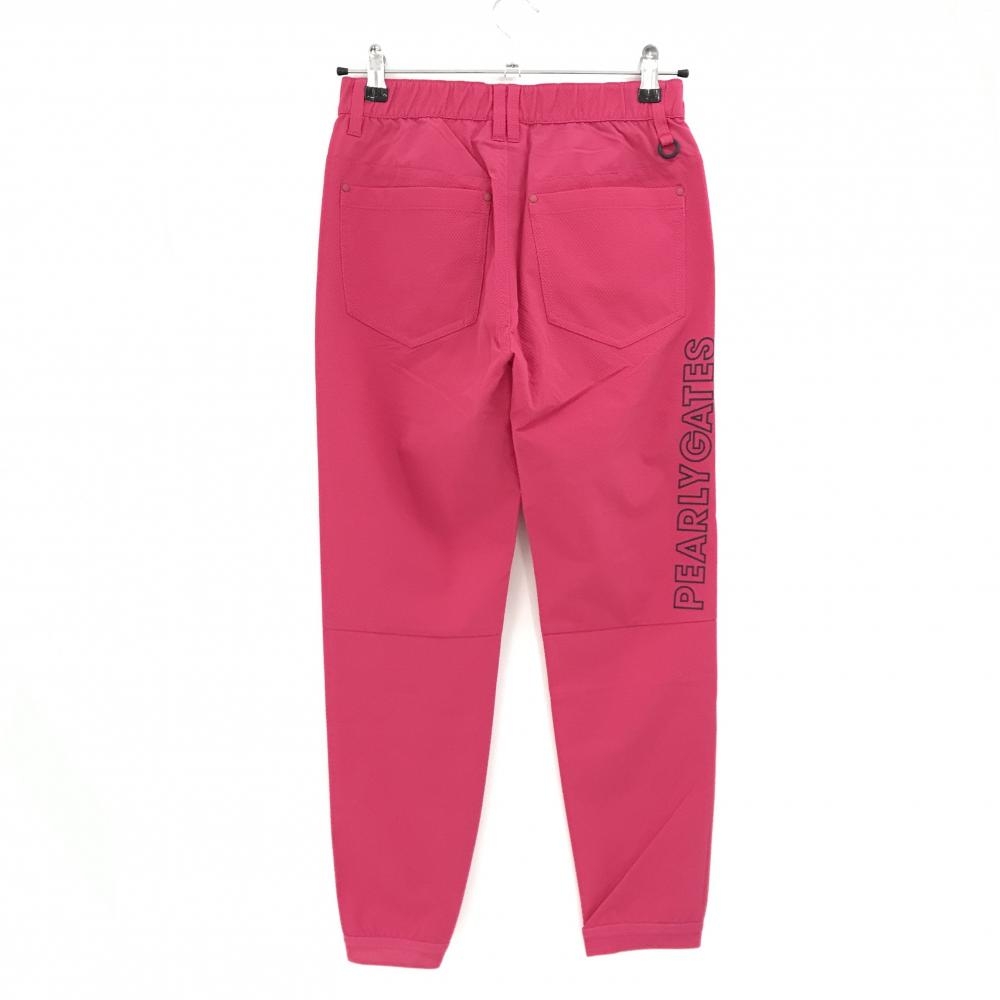 【新品】パーリーゲイツ ジョガーパンツ ピンク×ネイビー ダイヤ柄織生地 ロゴプリント レディース 0(S) ゴルフウェア PEARLY GATES