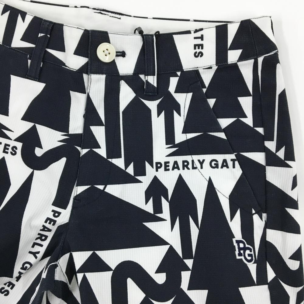 【新品】パーリーゲイツ パンツ 白×ネイビー ヤジルシ柄 ロゴ刺しゅう レディース 0(S) ゴルフウェア PEARLY GATES