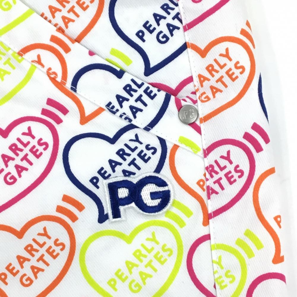 【新品】パーリーゲイツ パンツ 白×マルチカラー ハートロゴ総柄 ストレッチ レディース 0(S) ゴルフウェア PEARLY GATES