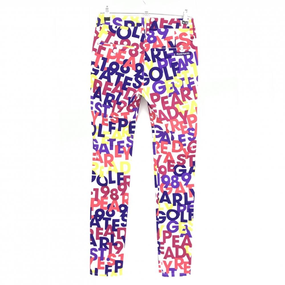 【新品】パーリーゲイツ パンツ 白×マルチカラー ロゴ英字総柄 ロゴ刺しゅう レディース 0(S) ゴルフウェア PEARLY GATES