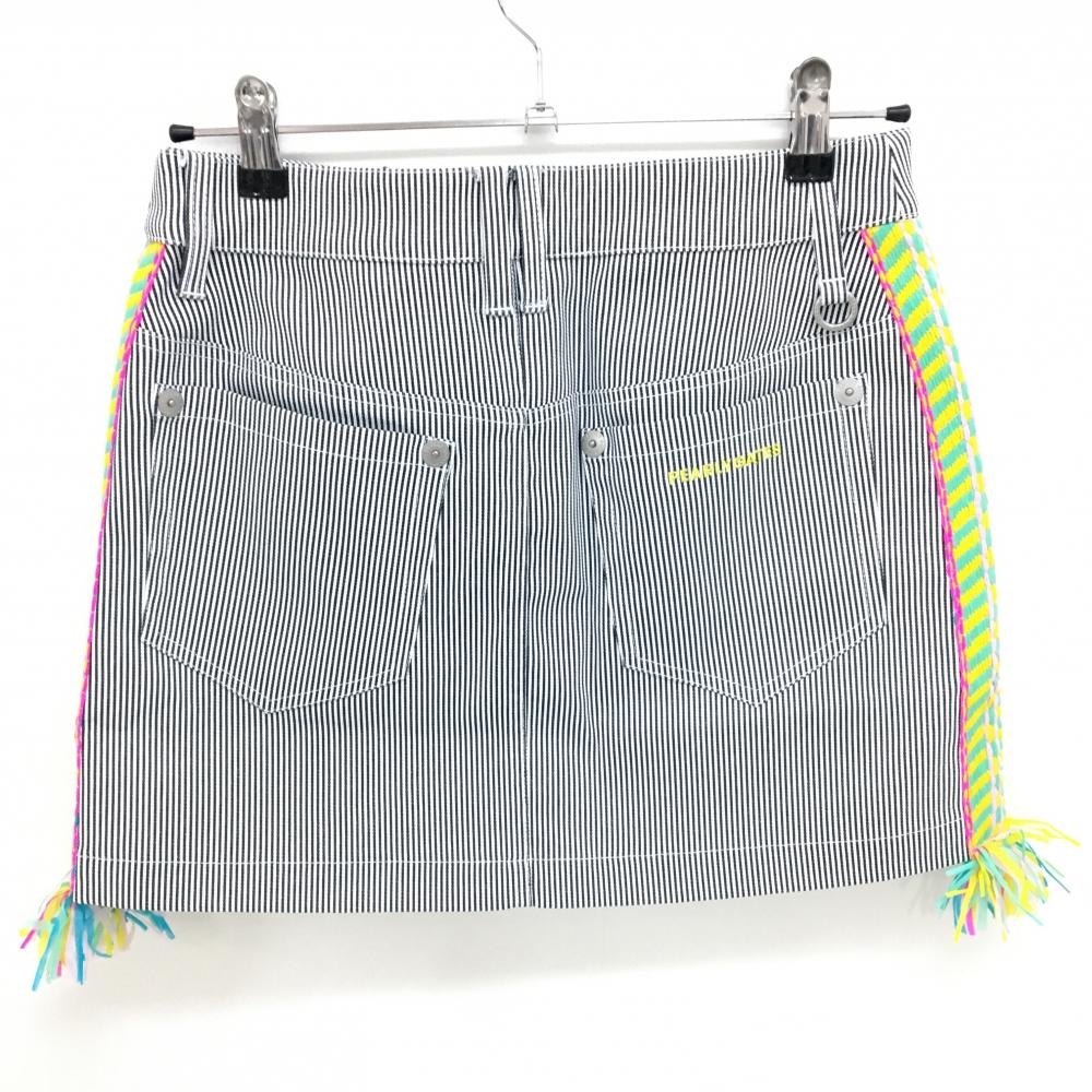【新品】パーリーゲイツ スカート 白×ネイビー ストライプ サイド異素材 フリンジ レディース 1(M) ゴルフウェア PEARLY GATES