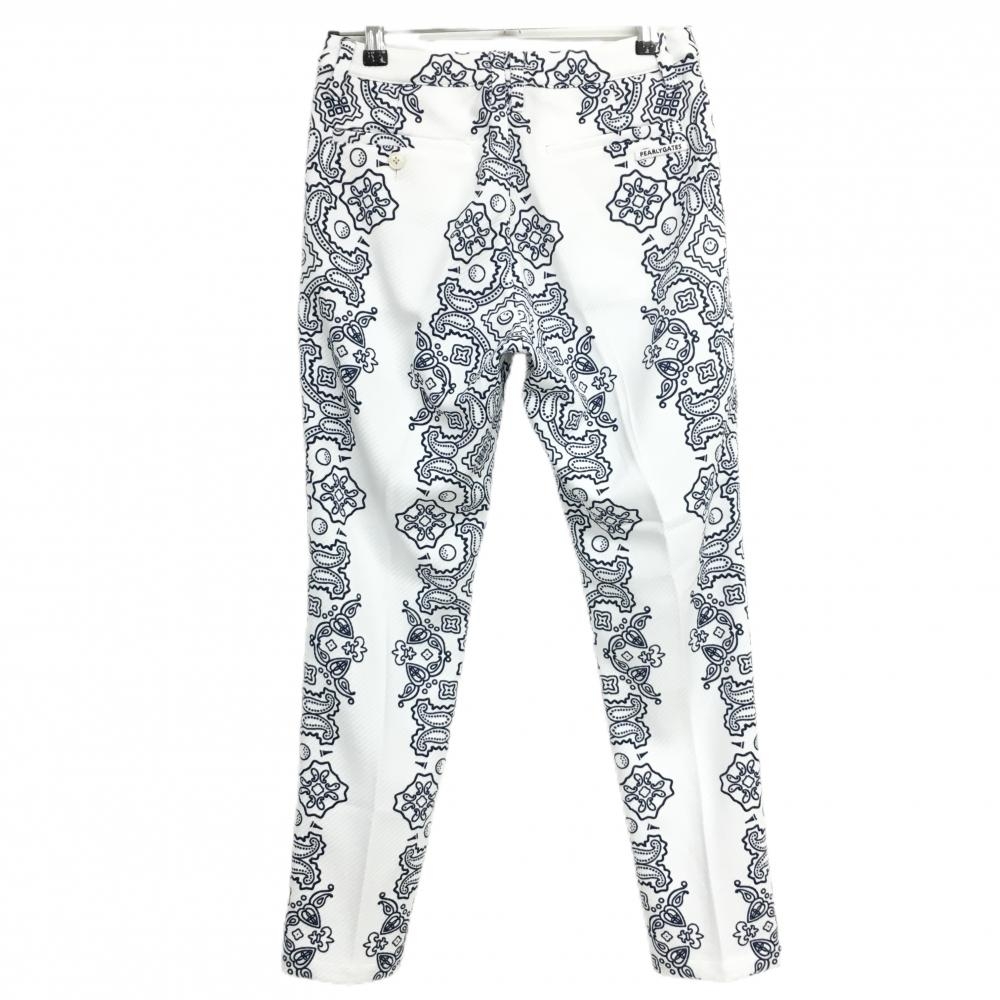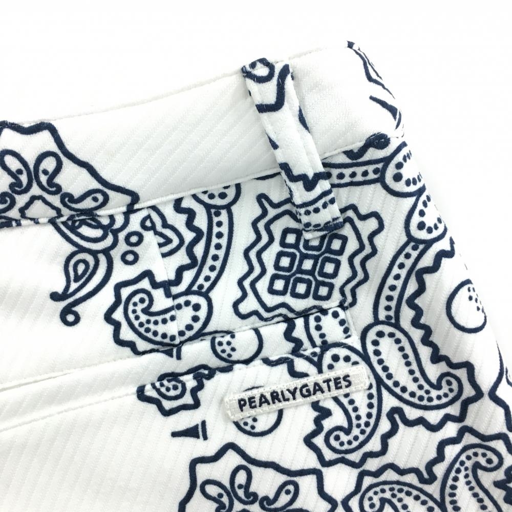 【新品】パーリーゲイツ パンツ 白×ネイビー ペイズリー調 PGニコちゃん レディース 0(S) ゴルフウェア PEARLY GATES