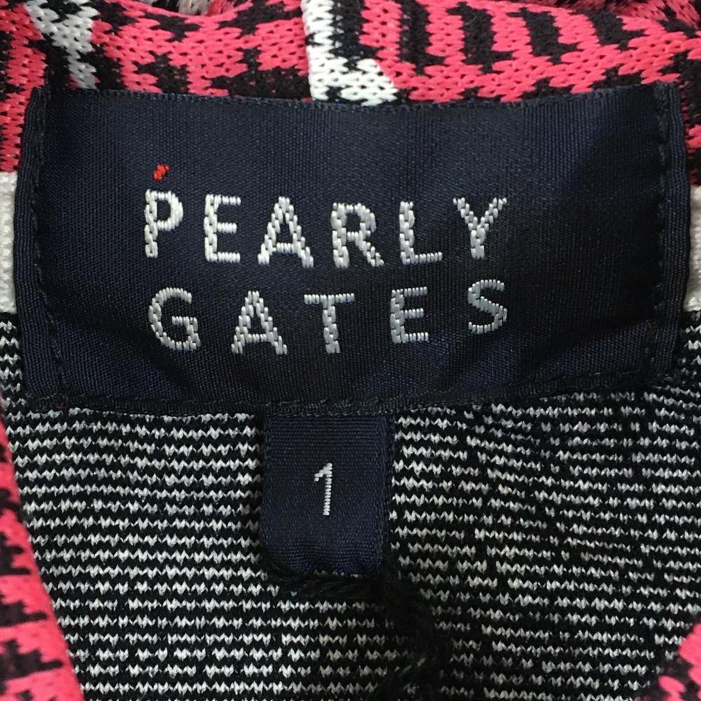 【新品】パーリーゲイツ ジップパーカー グレー×レッドピンク 千鳥柄 ロゴ刺しゅう ブルゾン レディース 1(M) ゴルフウェア PEARLY GATES