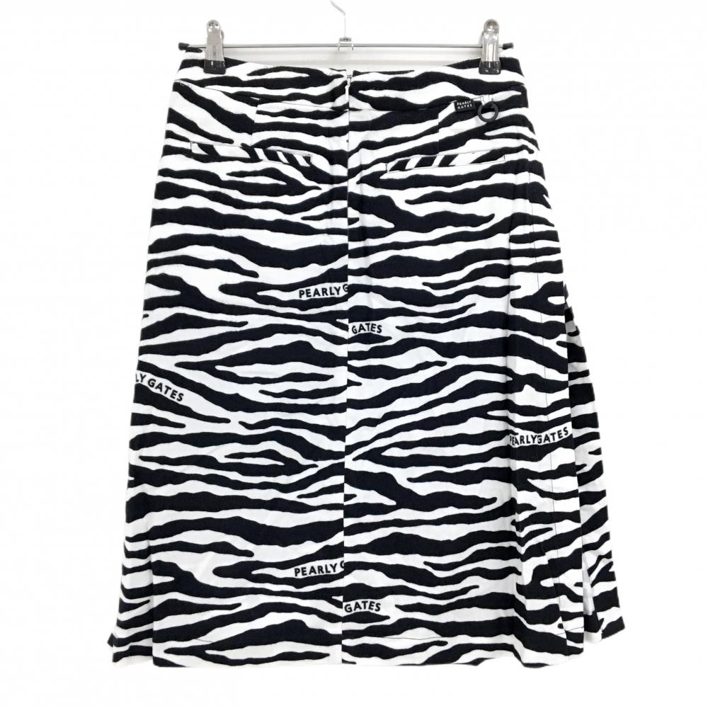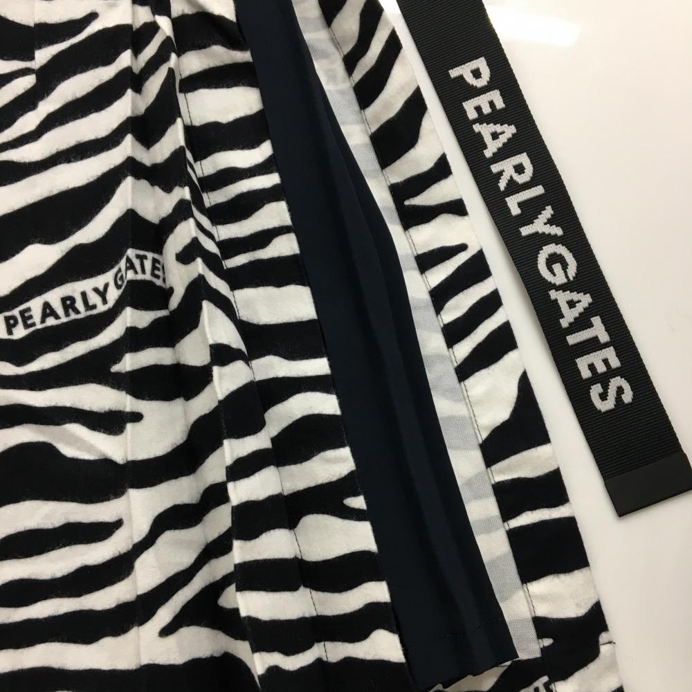 【新品】パーリーゲイツ スカート 白×黒 ゼブラ柄 微起毛 内側プリーツ レディース 0(S) ゴルフウェア PEARLY GATES