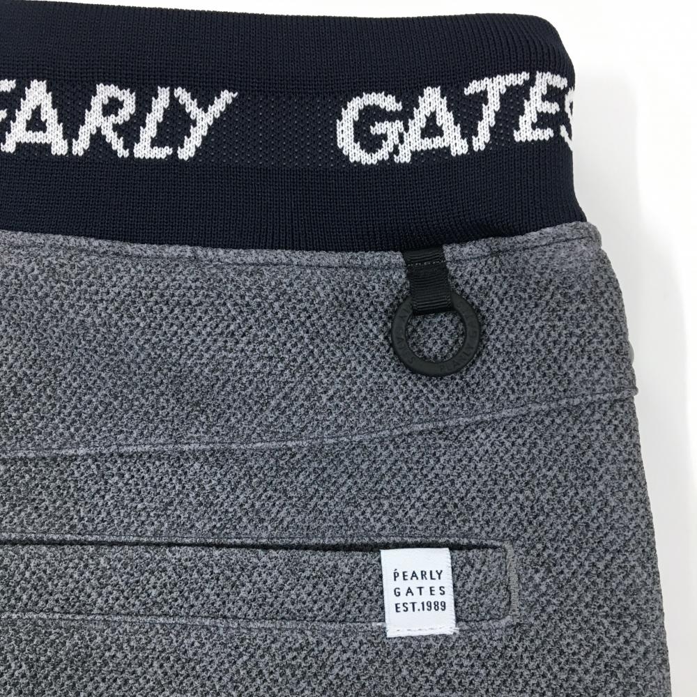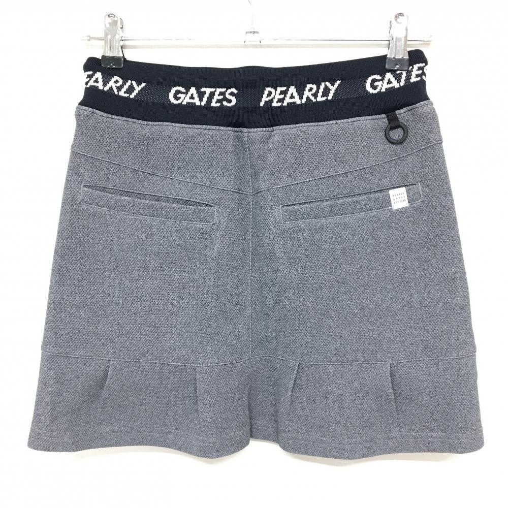 【新品】パーリーゲイツ スカート グレー×ネイビー ロゴプリント ウエストゴム 調節紐 レディース 00(XS) ゴルフウェア PEARLY GATES
