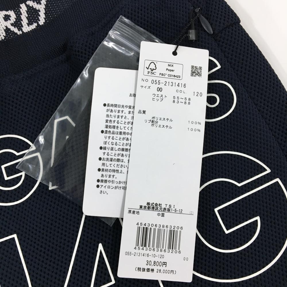 【新品】パーリーゲイツ ジョガーパンツ ネイビー×白 ロゴプリント ウエストゴム 調節紐 レディース 00(XS) ゴルフウェア PEARLY GATES