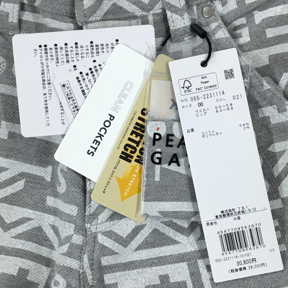 【新品】パーリーゲイツ パンツ グレー×白 総柄 ロゴ刺しゅう ストレッチ 表微起毛 レディース 00(XS) ゴルフウェア PEARLY GATES