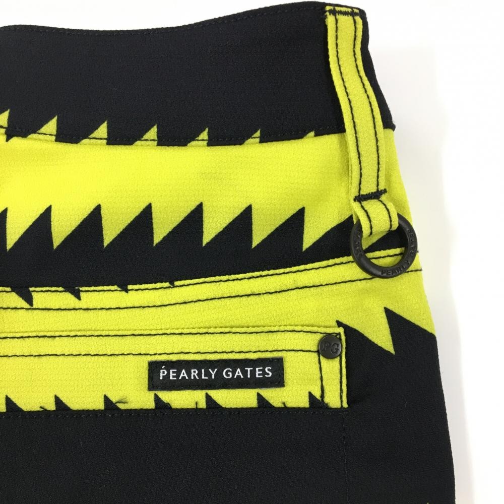 【新品】パーリーゲイツ パンツ 黒×イエロー 稲妻 ギザギザボーダー ストレッチ レディース 00(XS) ゴルフウェア PEARLY GATES