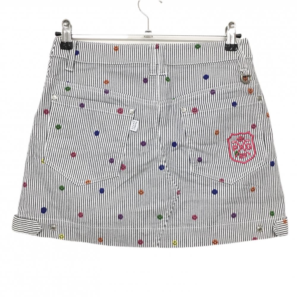 【美品】パーリーゲイツ スカート 白×ネイビー ストライプ ニコちゃん総柄 レディース 1(M) ゴルフウェア PEARLY GATES