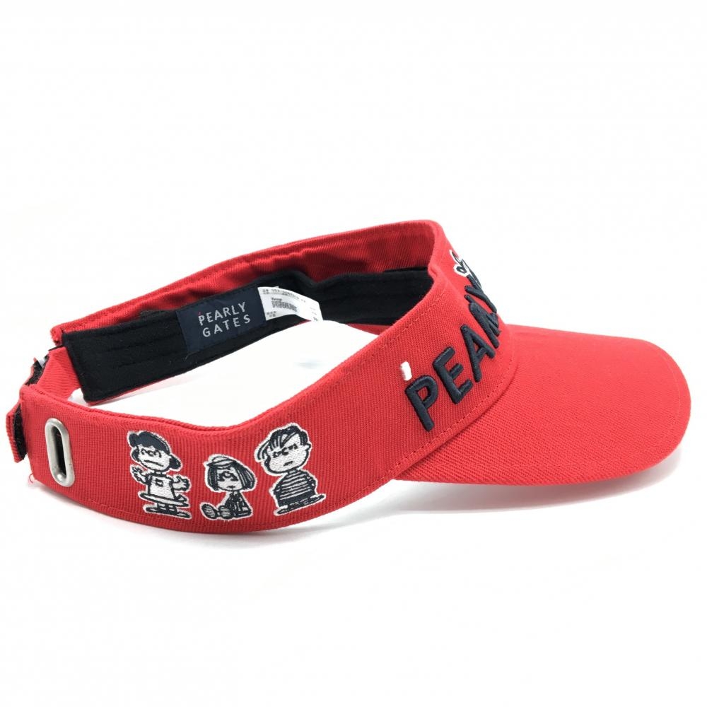 【美品】パーリーゲイツ×PEANUTS サンバイザー レッド スヌーピー刺しゅう FR ゴルフウェア PEARLY GATES