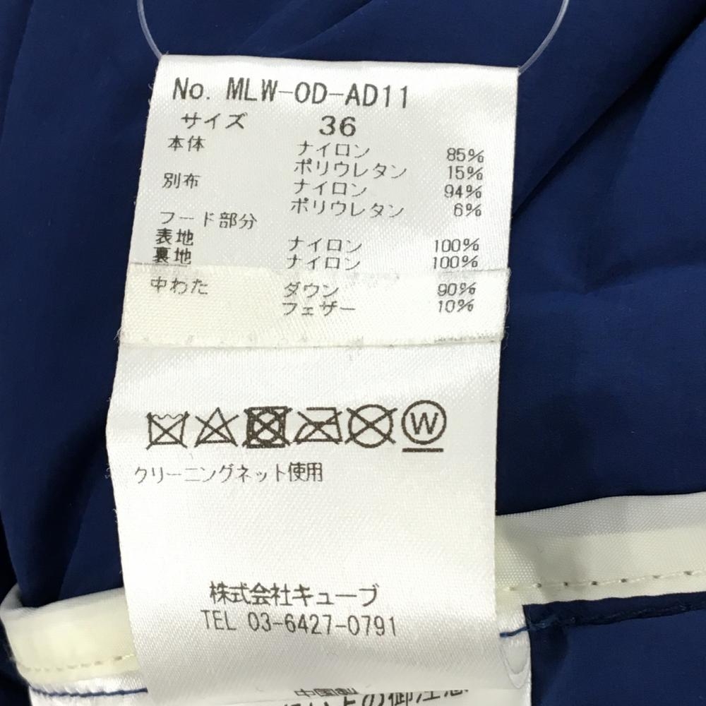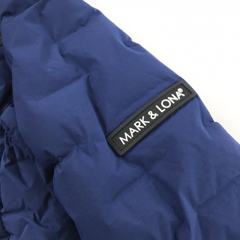 【美品】マークアンドロナ 2WAYダウンジャケット ブルーネイビー系×黒 軽量 フード着脱可 レディース 36(S) ゴルフウェア MARK&LONA