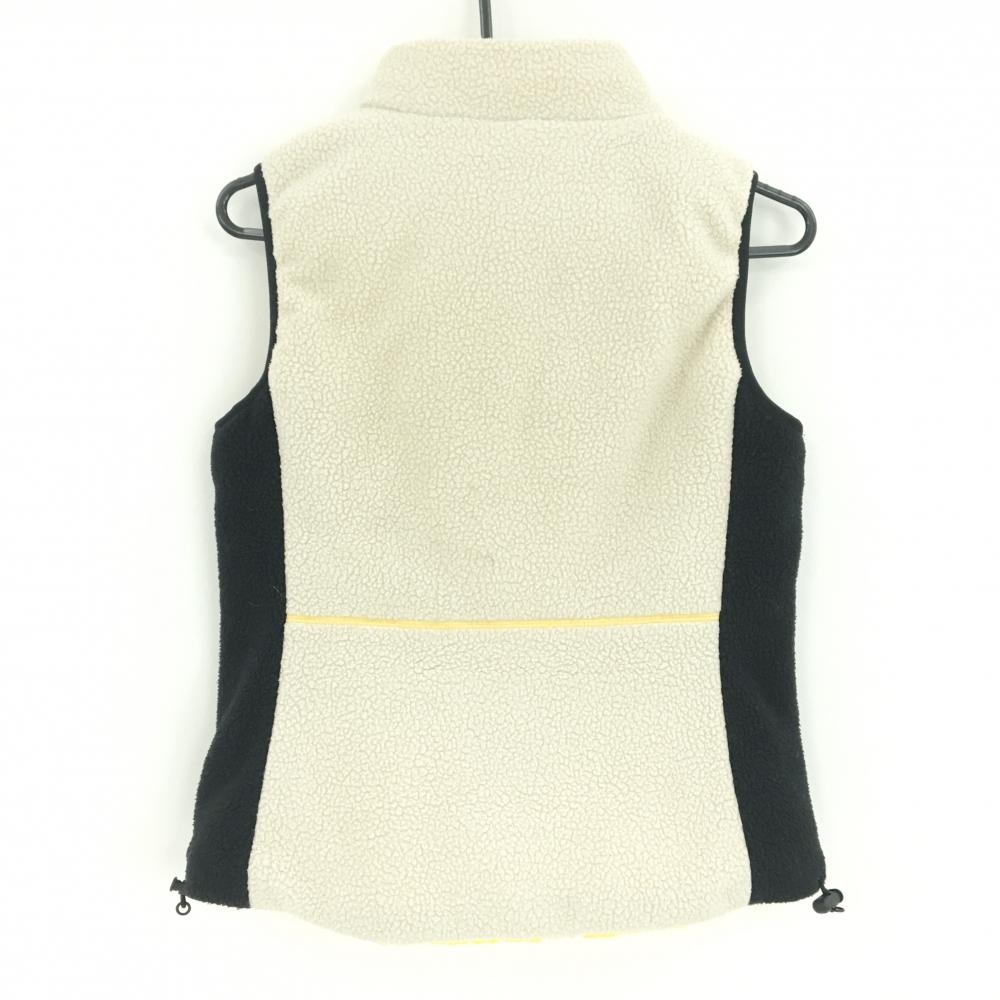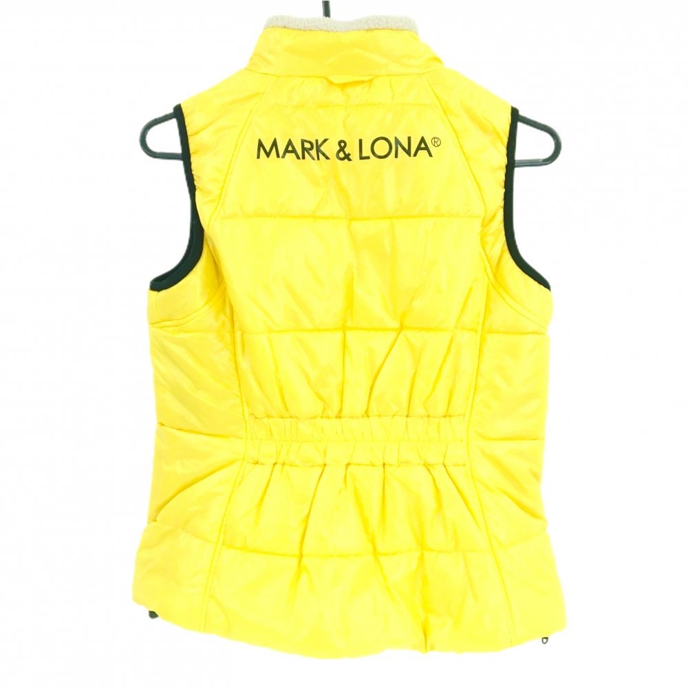 【美品】マークアンドロナ 中綿リバーシブルボアベスト ベージュ×黒 裏イエロー レディース 36(S) ゴルフウェア MARK&LONA