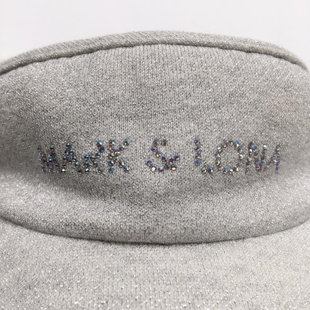 マークアンドロナ サンバイザー シルバー×白 イヤーマフ付 ラインストーン ゴルフウェア MARK&LONA