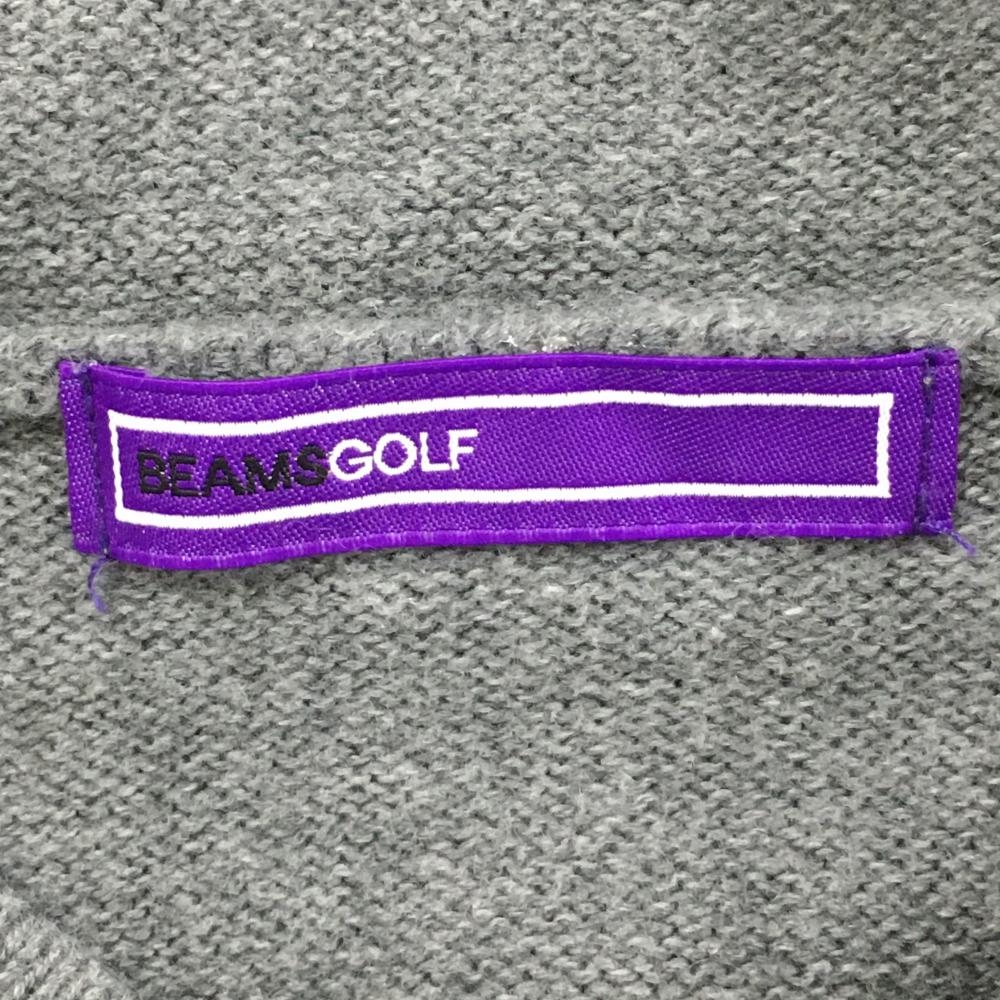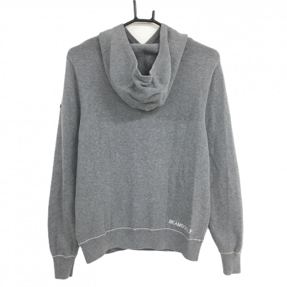 ビームスゴルフ フード付きセーター グレー×白 腹部ポケット カシミヤ混 レディース ゴルフウェア BEAMS GOLF