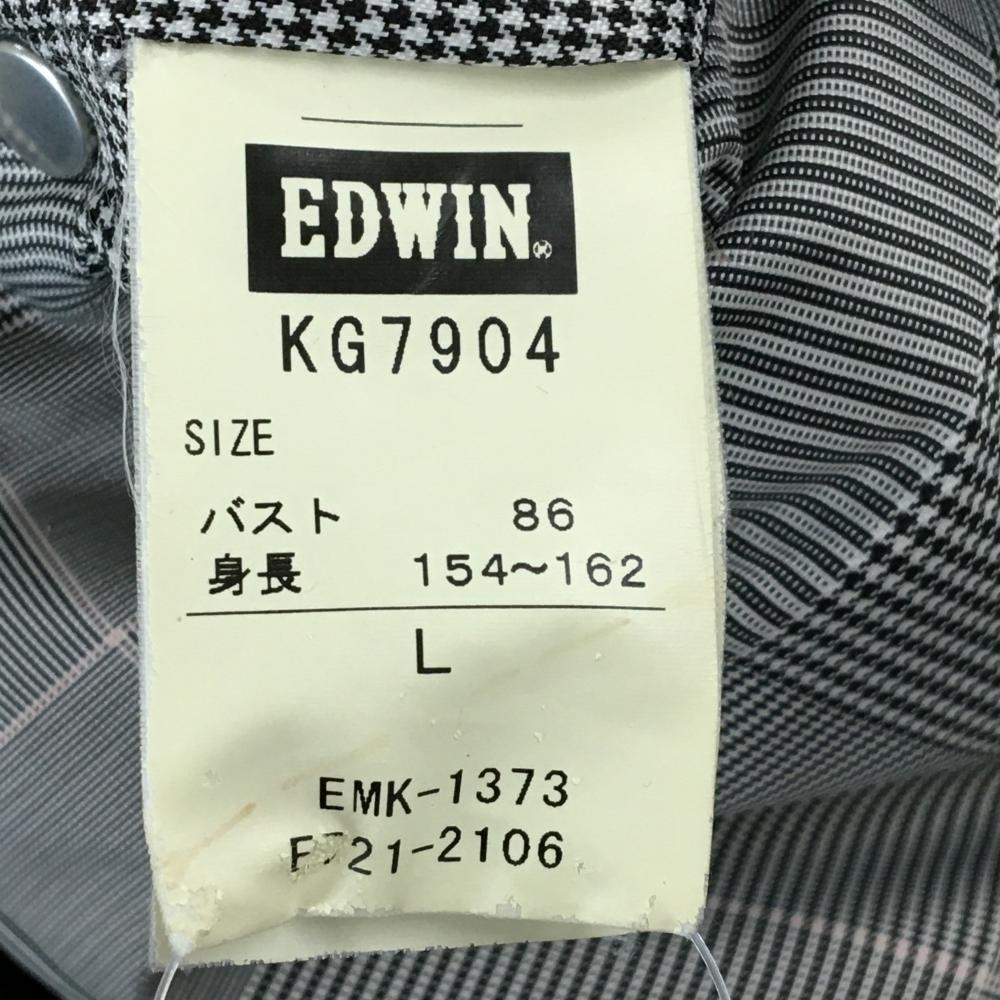 【美品】エドウィンゴルフ ダウンベスト 黒系 千鳥格子風 地模様 レディース LARGE ゴルフウェア EDWIN GOLF