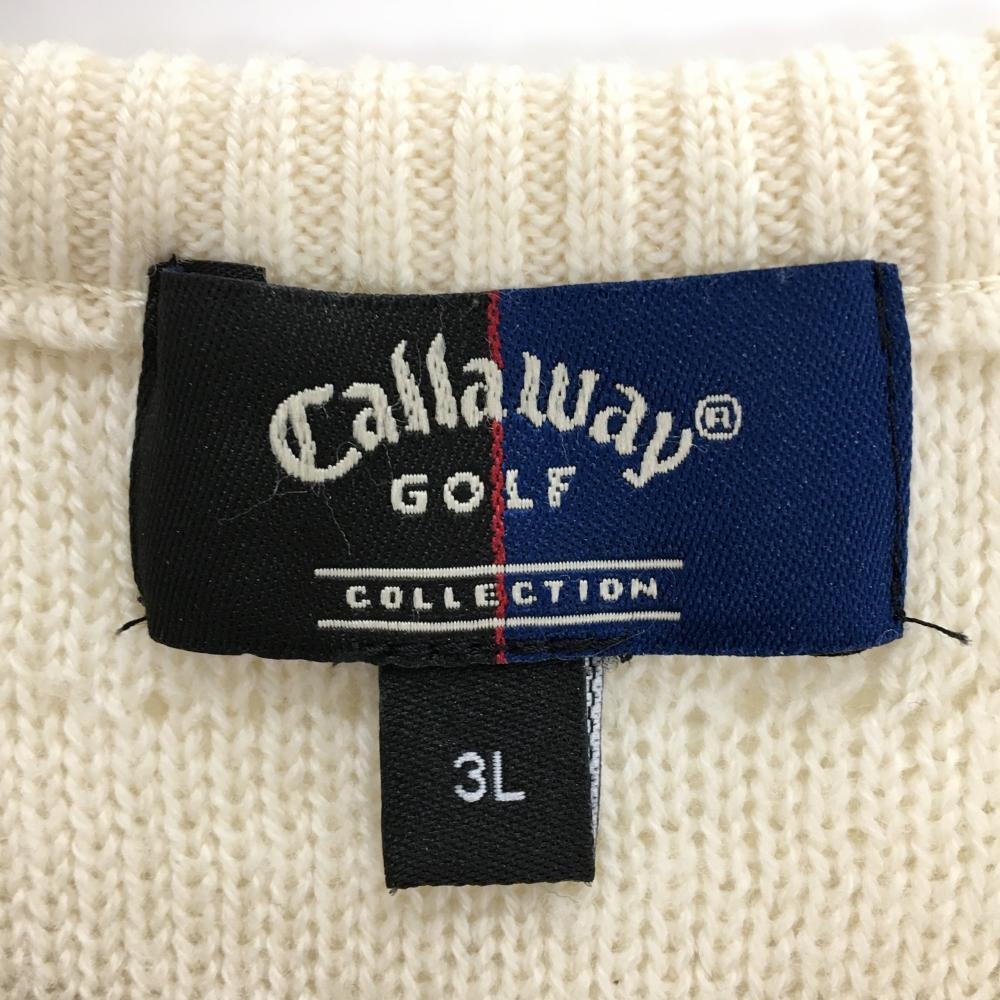 キャロウェイ ニットベスト ライトベージュ ロゴ刺しゅう Vネック ウール100% メンズ 3L ゴルフウェア 大きいサイズ Callaway