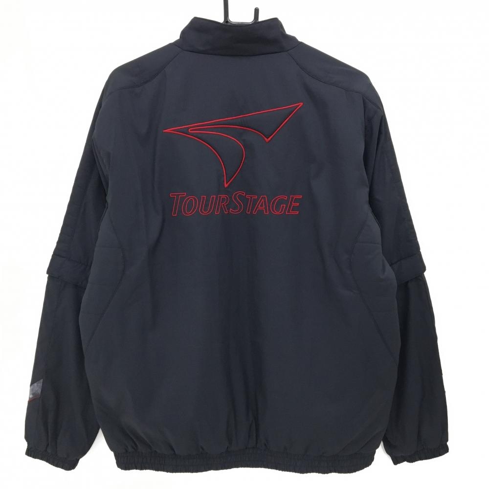 【美品】ツアーステージ 2WAY中綿ジャケット 黒 ロゴ刺しゅう 袖着脱可 メンズ L ゴルフウェア TOURSTAGE