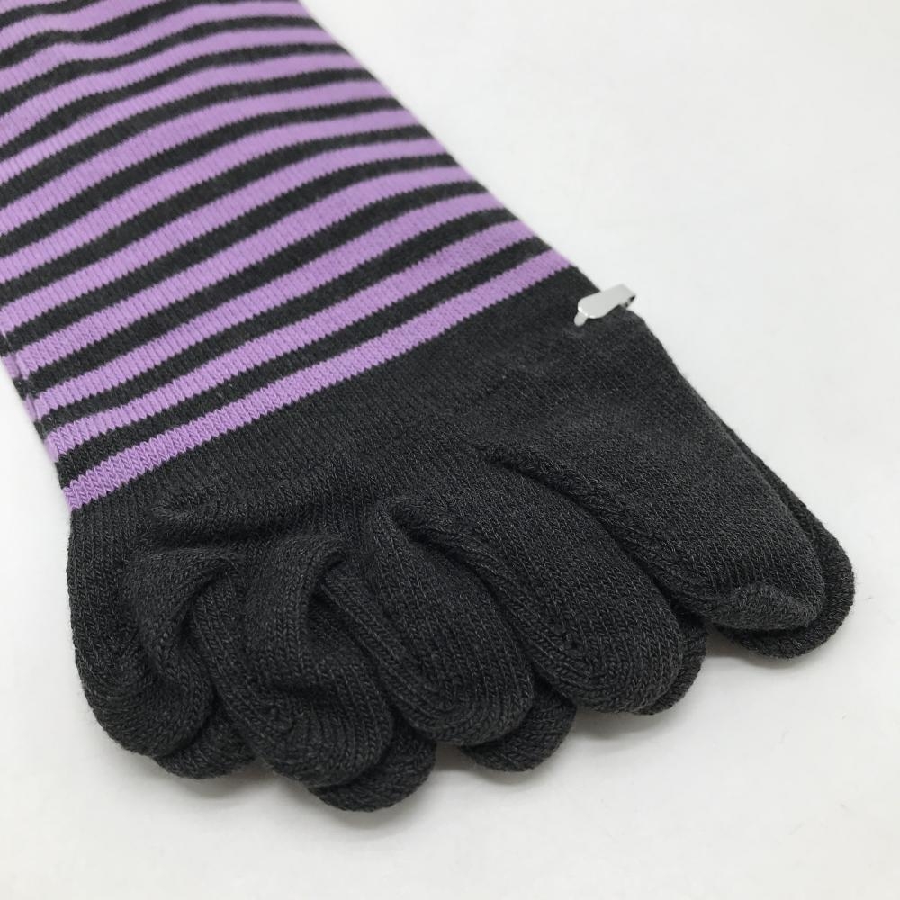 【新品】23区スポーツ ハイソックス 黒×パープル ボーダー 五本指 レディース ゴルフウェア 23区