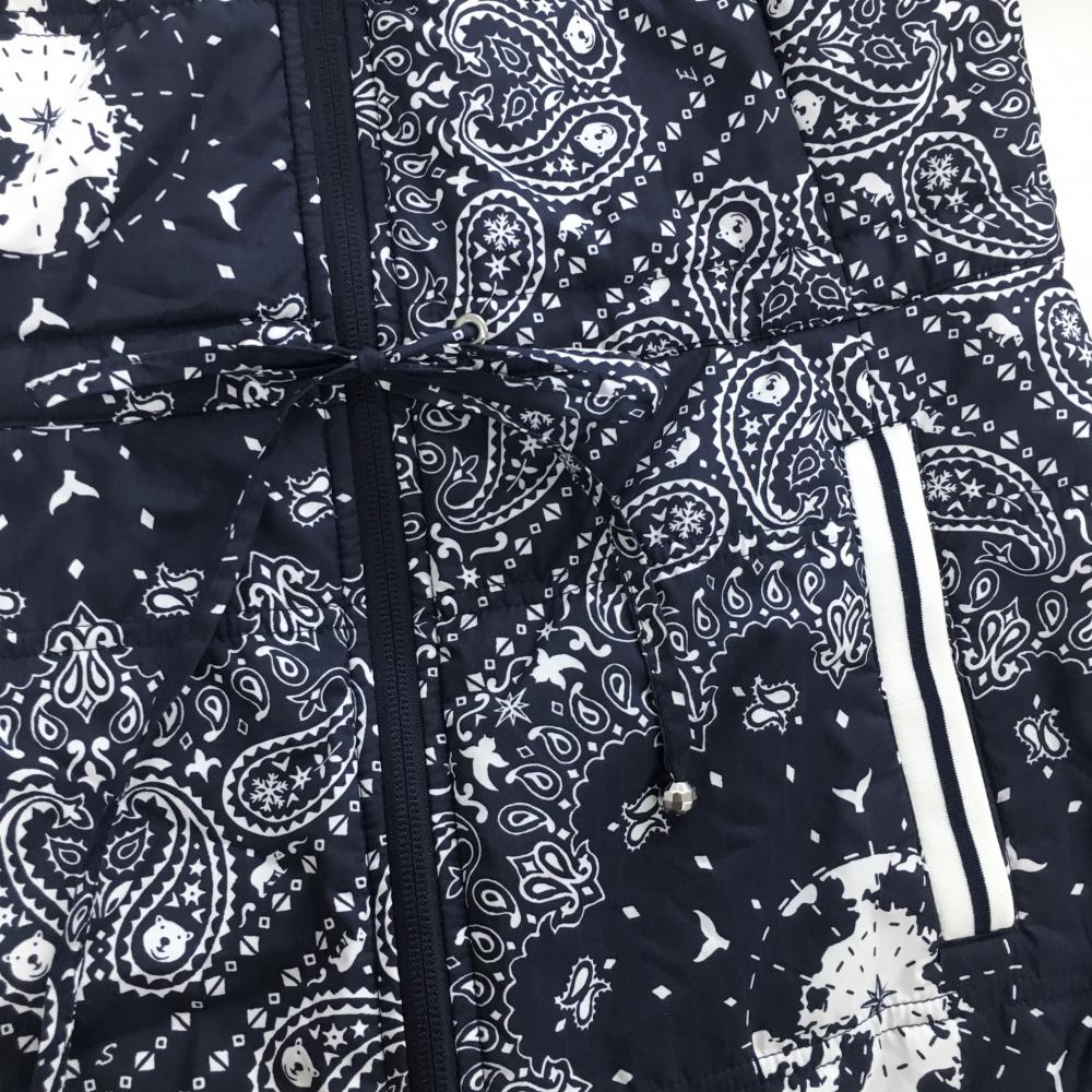 【超美品】キャロウェイ 中綿ノースリーブワンピース ネイビー×白 ペイズリー柄 ロゴワッペン レディース L ゴルフウェア Callaway
