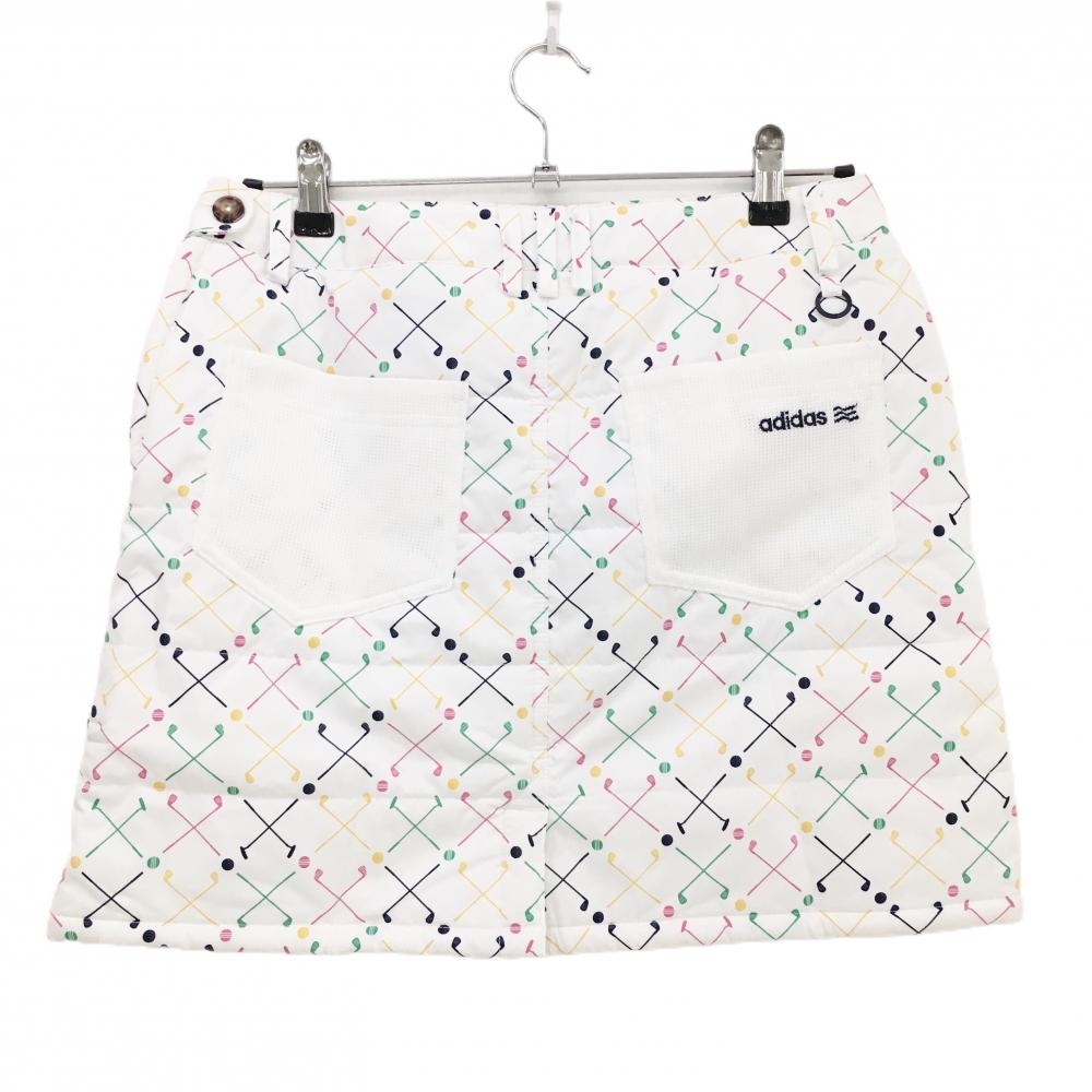 【新品】アディダス 中綿スカート 白×マルチカラー 総柄 レディース L/G ゴルフウェア adidas