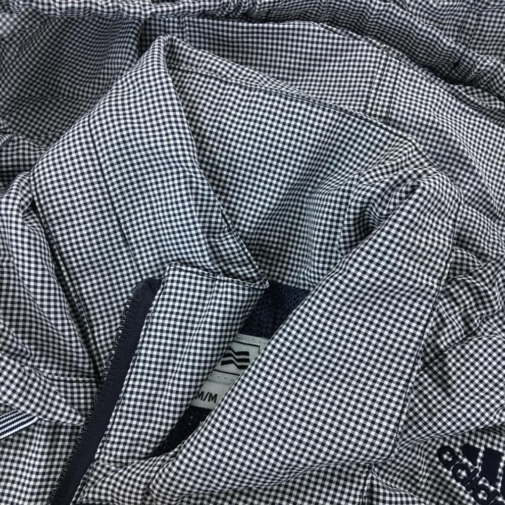 【美品】アディダス 4WAYジャケット ネイビー×白 細目チェック 裏地メッシュ 袖着脱可 フード収納可 メンズ M/M ゴルフウェア adidas