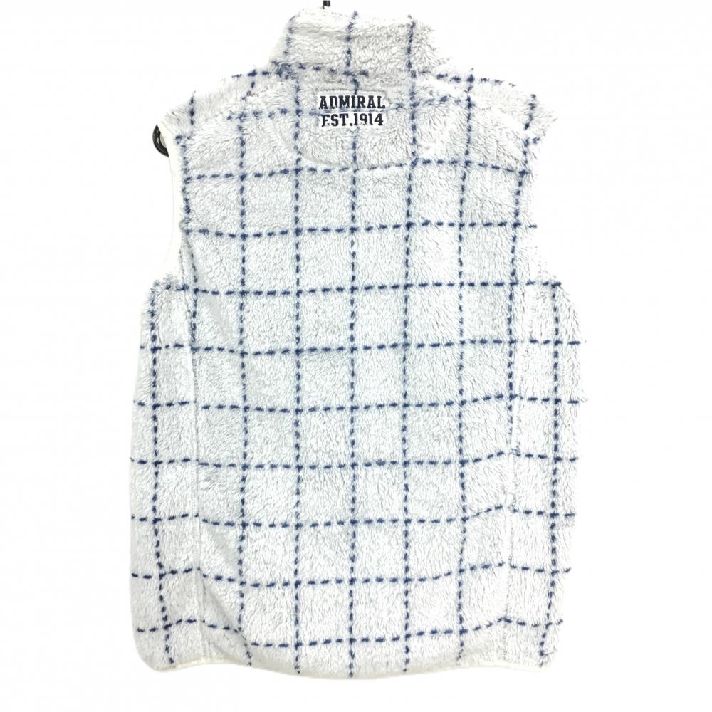 【美品】アドミラル ボアベスト ライトグレー×ネイビー 格子柄 ロゴ メンズ L ゴルフウェア Admiral