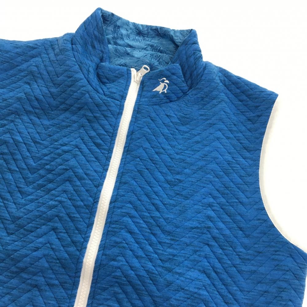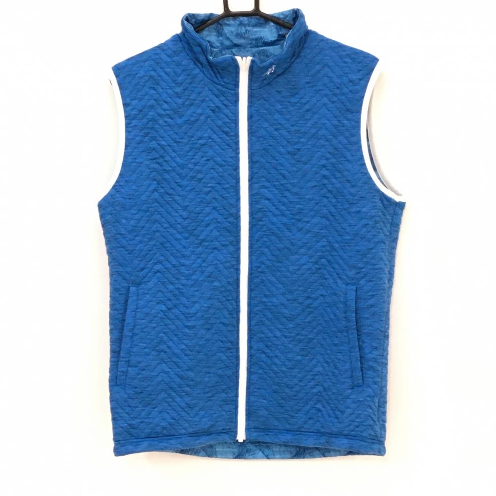 【超美品】パラディーゾ リバーシブルベスト ブルー×ネイビー 総柄 裏杢ブルー ロゴ メンズ L ゴルフウェア Paradiso