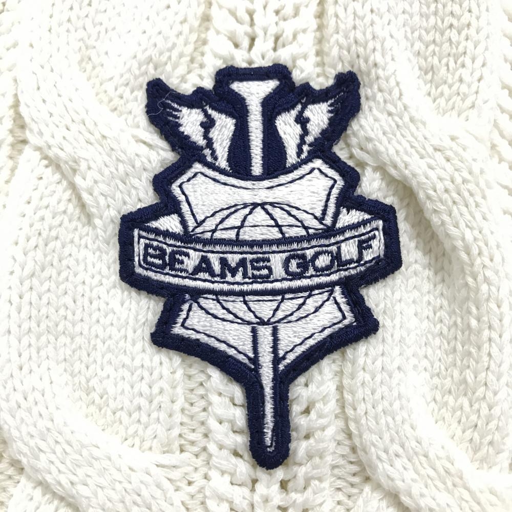 【美品】ビームスゴルフ ニットベスト アイボリー×ネイビー ケーブル編み ワッペン メンズ L ゴルフウェア BEAMS GOLF