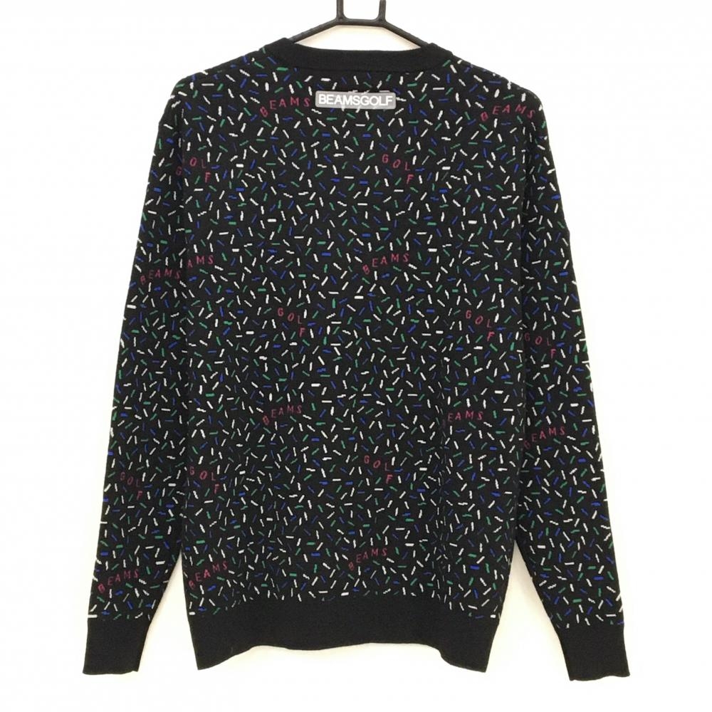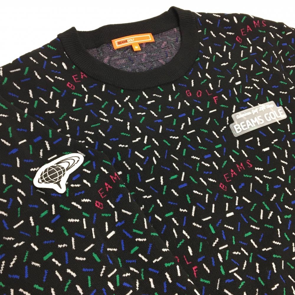 【超美品】ビームスゴルフ セーター 黒×白 総柄 シリコンワッペン ニット ウール混 メンズ M ゴルフウェア BEAMS GOLF