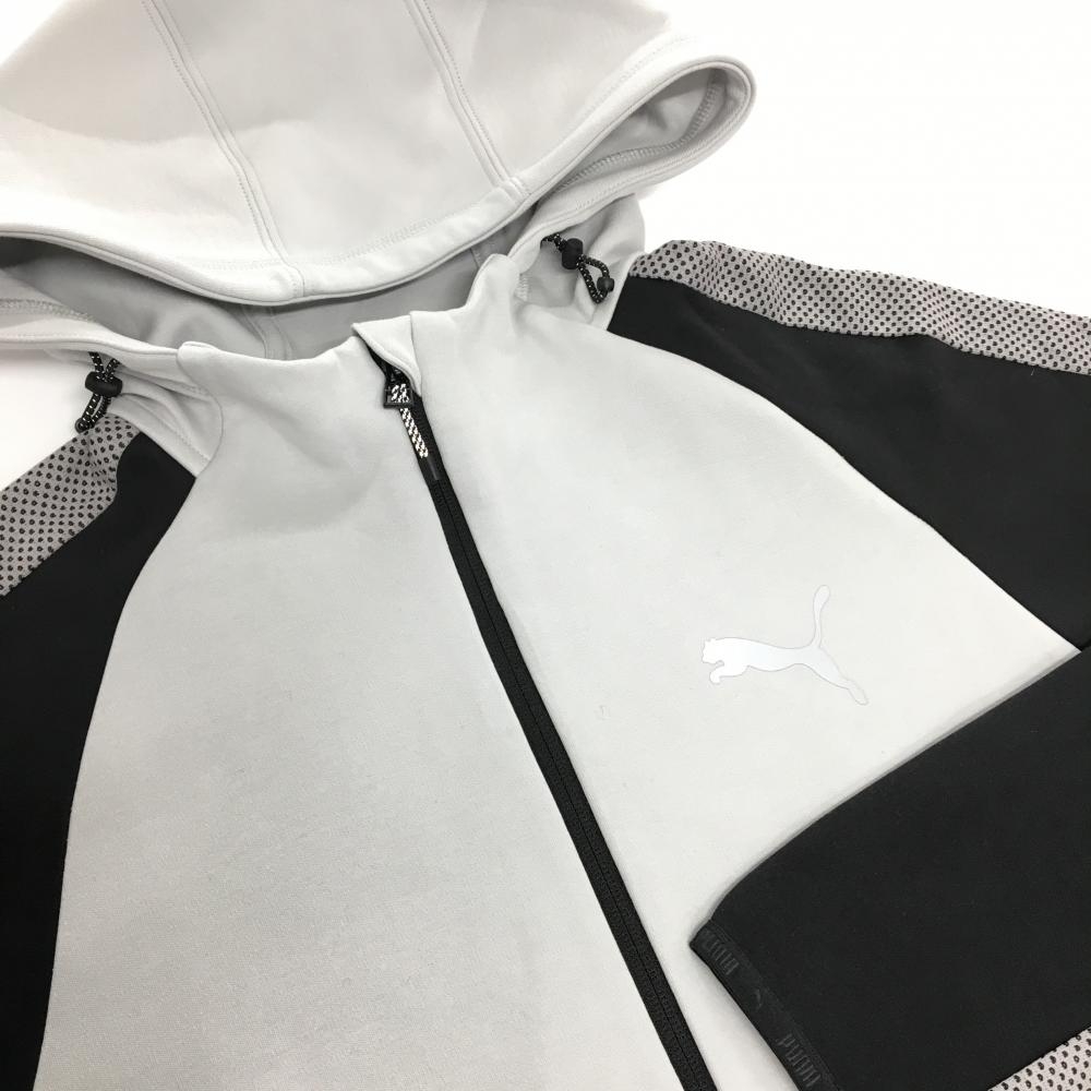 【超美品】プーマ ジップパーカー グレー×黒 一部ドット調 メンズ US-M ゴルフウェア 2024年モデル PUMA