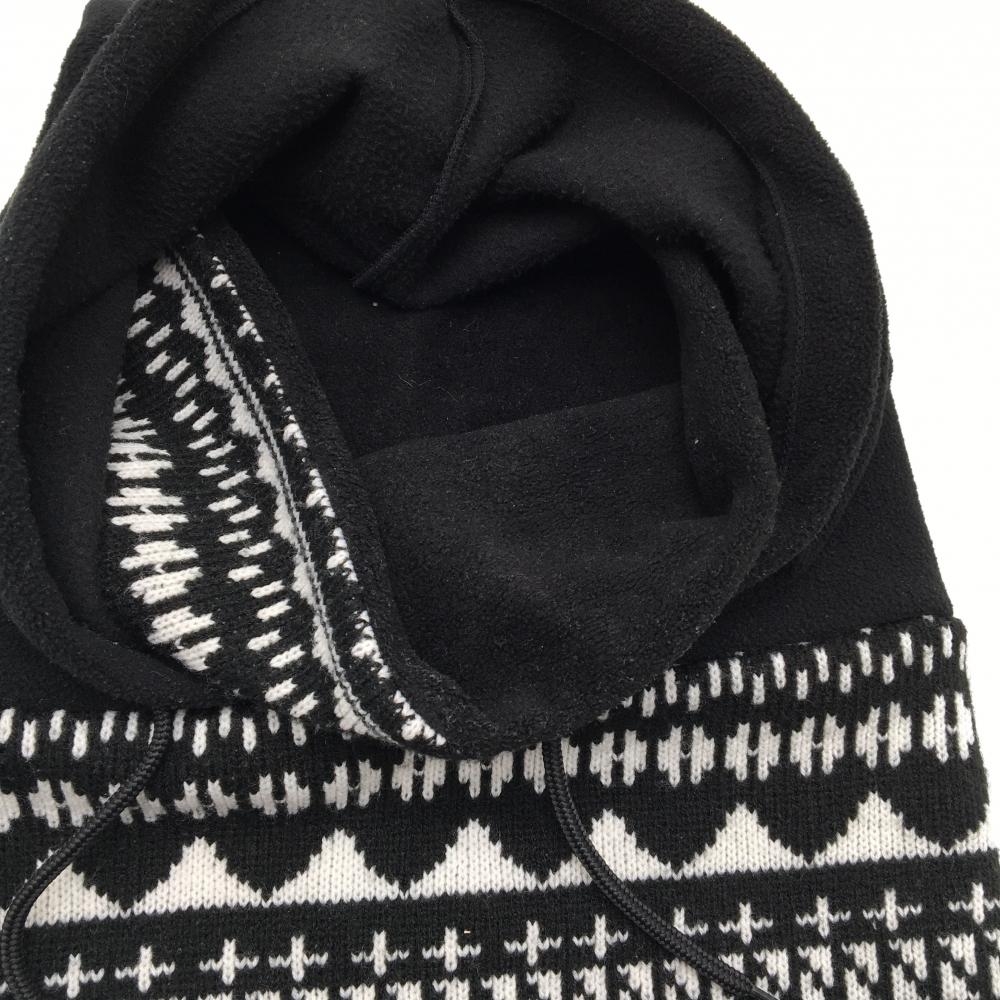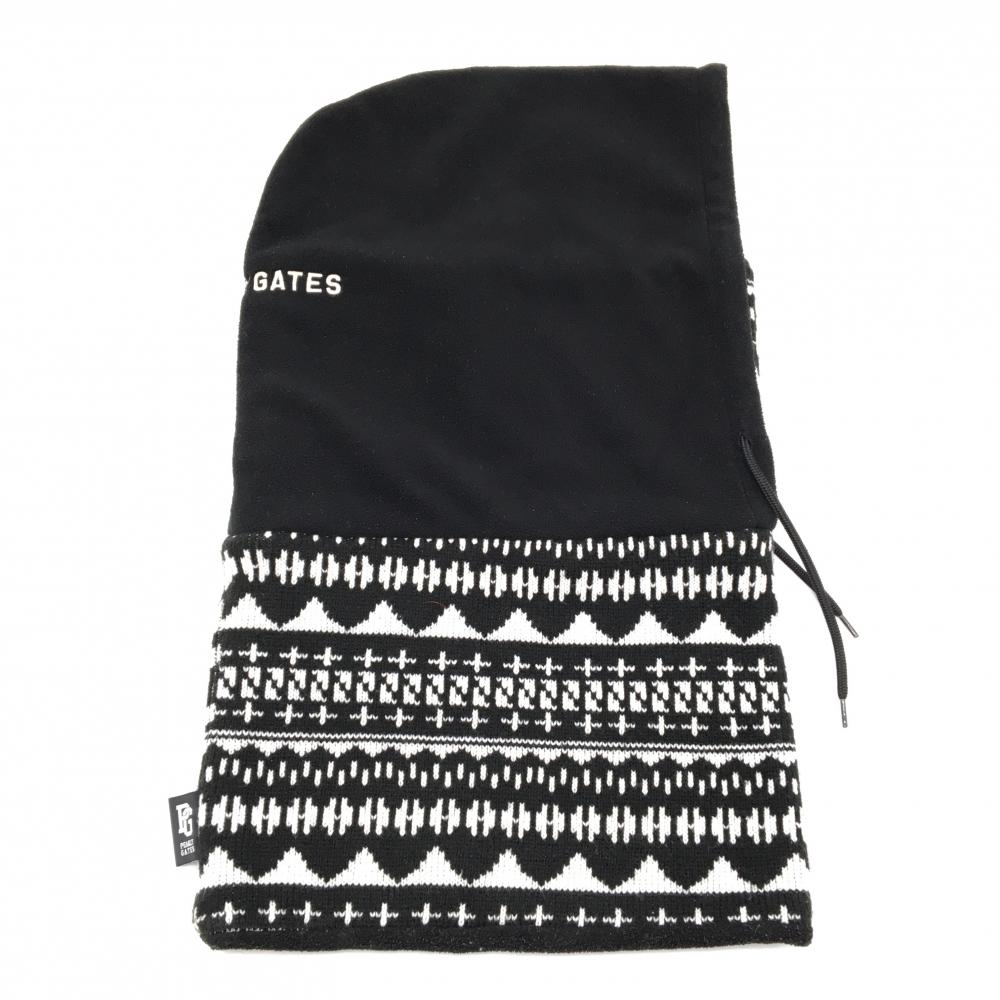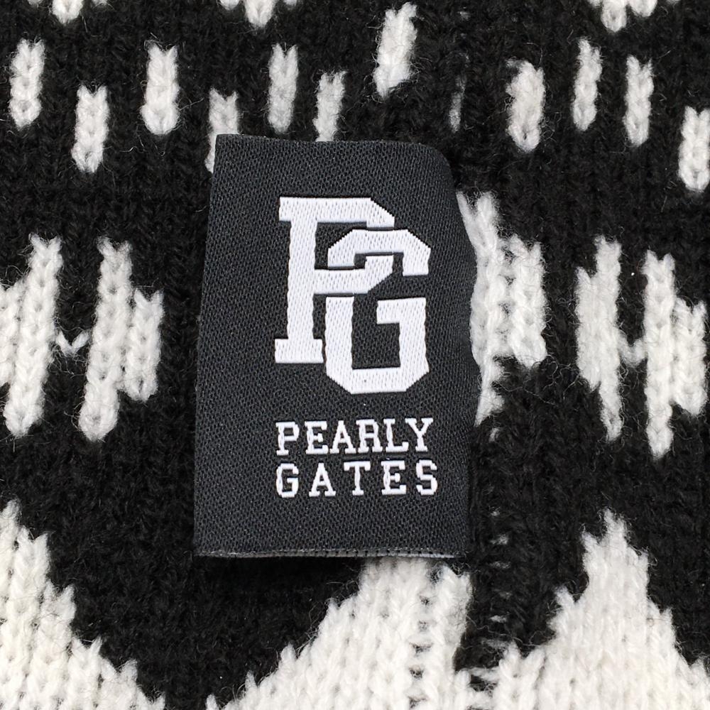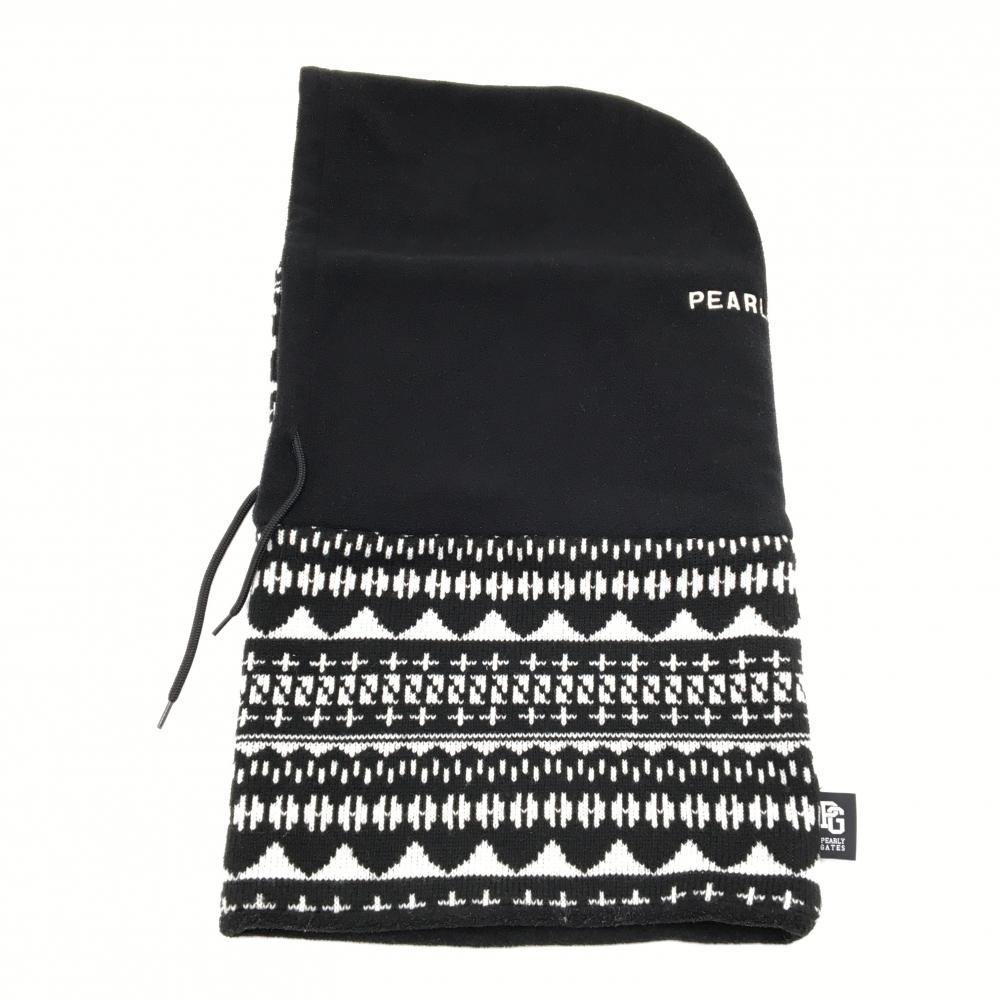 【美品】パーリーゲイツ フード付ネックウォーマー 黒×白 総柄 ニット 裏・フードフリース FR ゴルフウェア PEARLY GATES